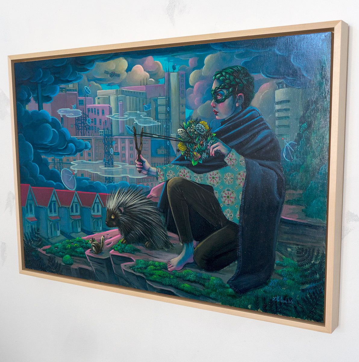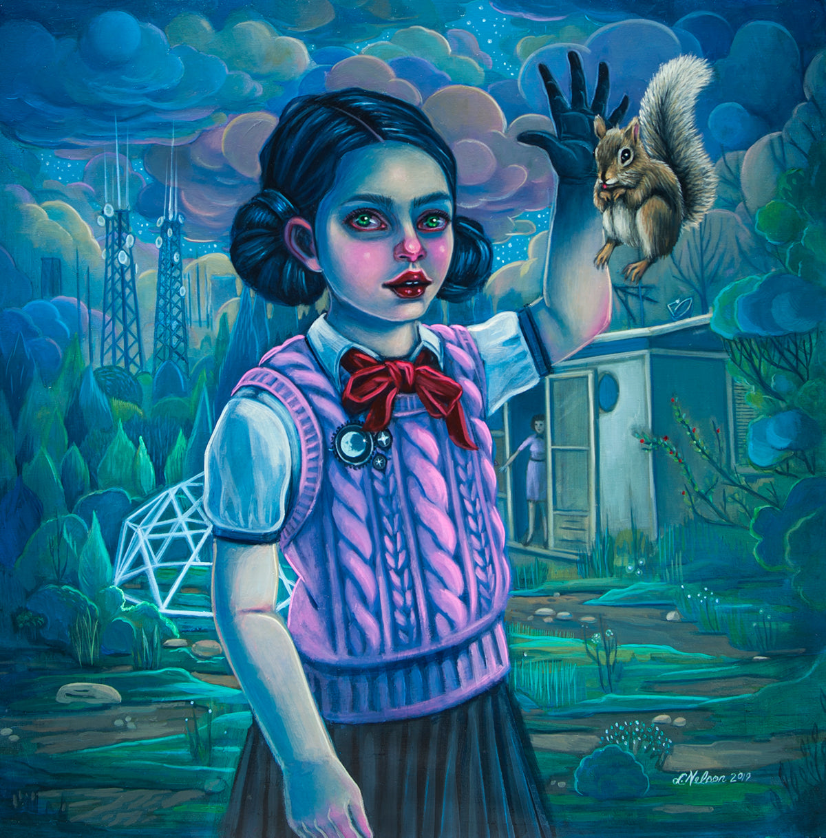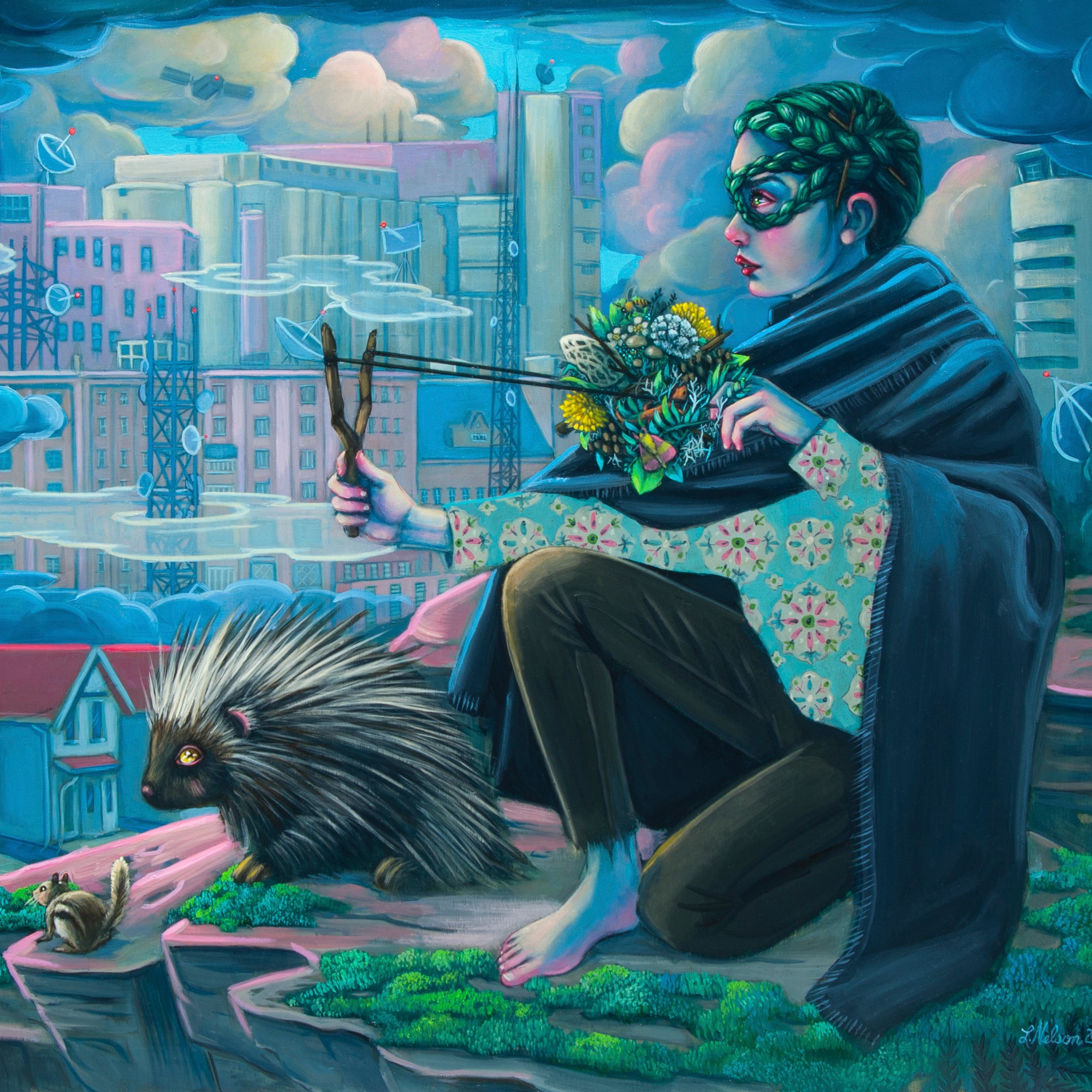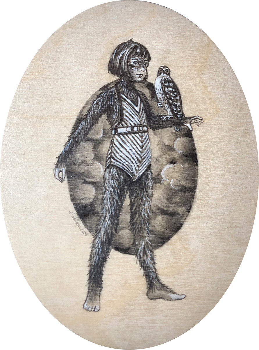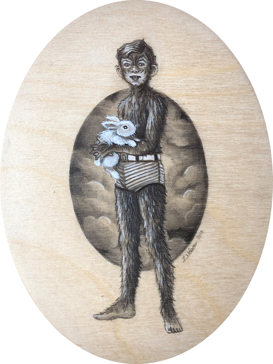 From the artist: For the past five years, I have been exploring the awkwardness of young human existence through my "Cryptotweens" paintings where the strangeness of being has mostly been portrayed in cryptid-inflected tweens and teens sporting scales or fur. Lately though, in an iteration of this series called "Secret Self", I portray most of the Cryptotweens as actual "normal" humans whose strangeness is exhibited in extraordinary talents like levitation or hidden characteristics like a spiky, charcoal heart.