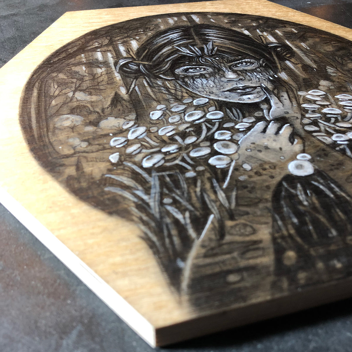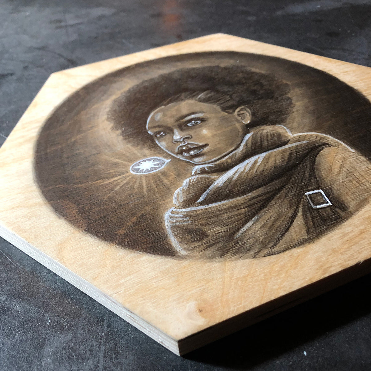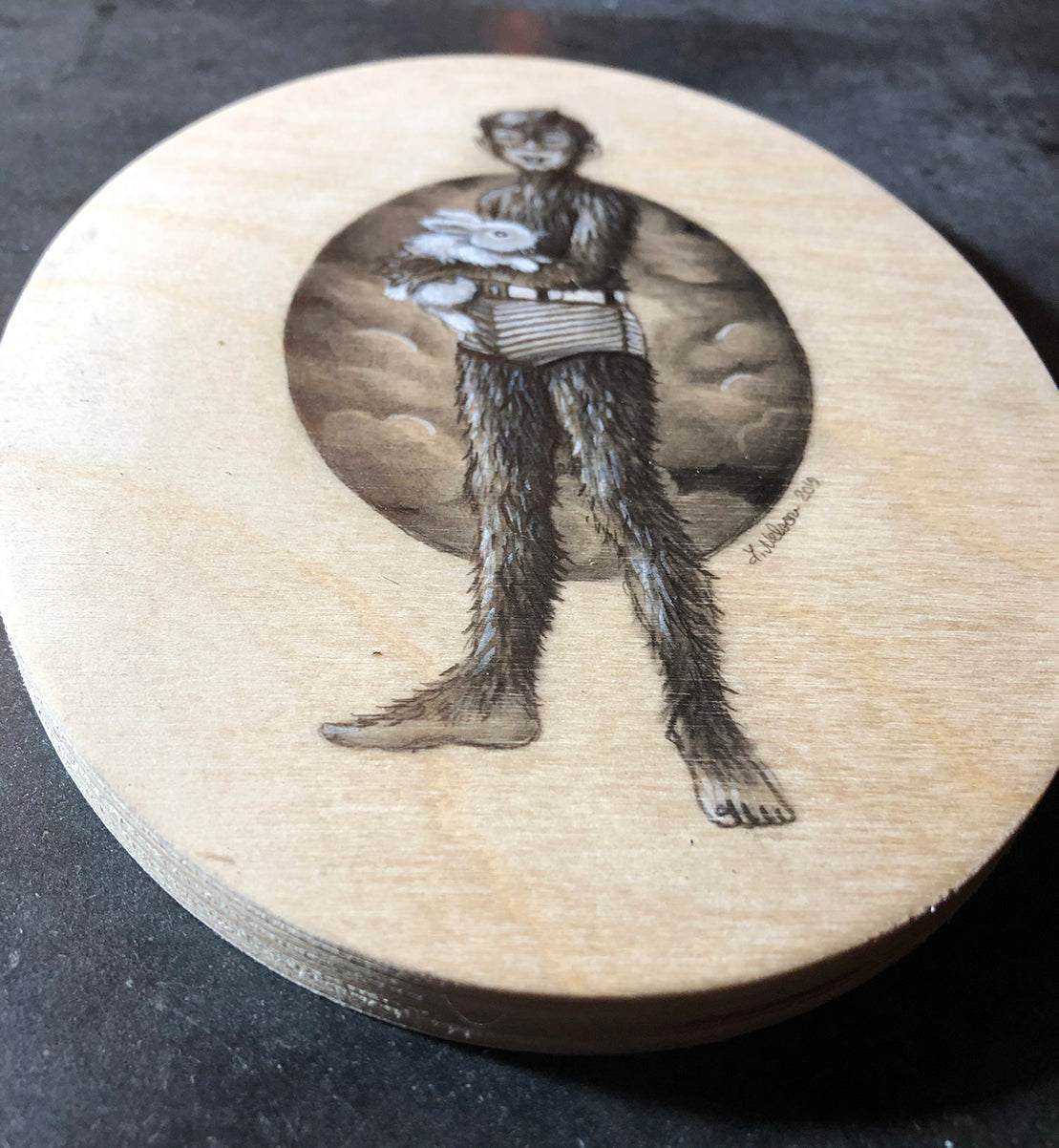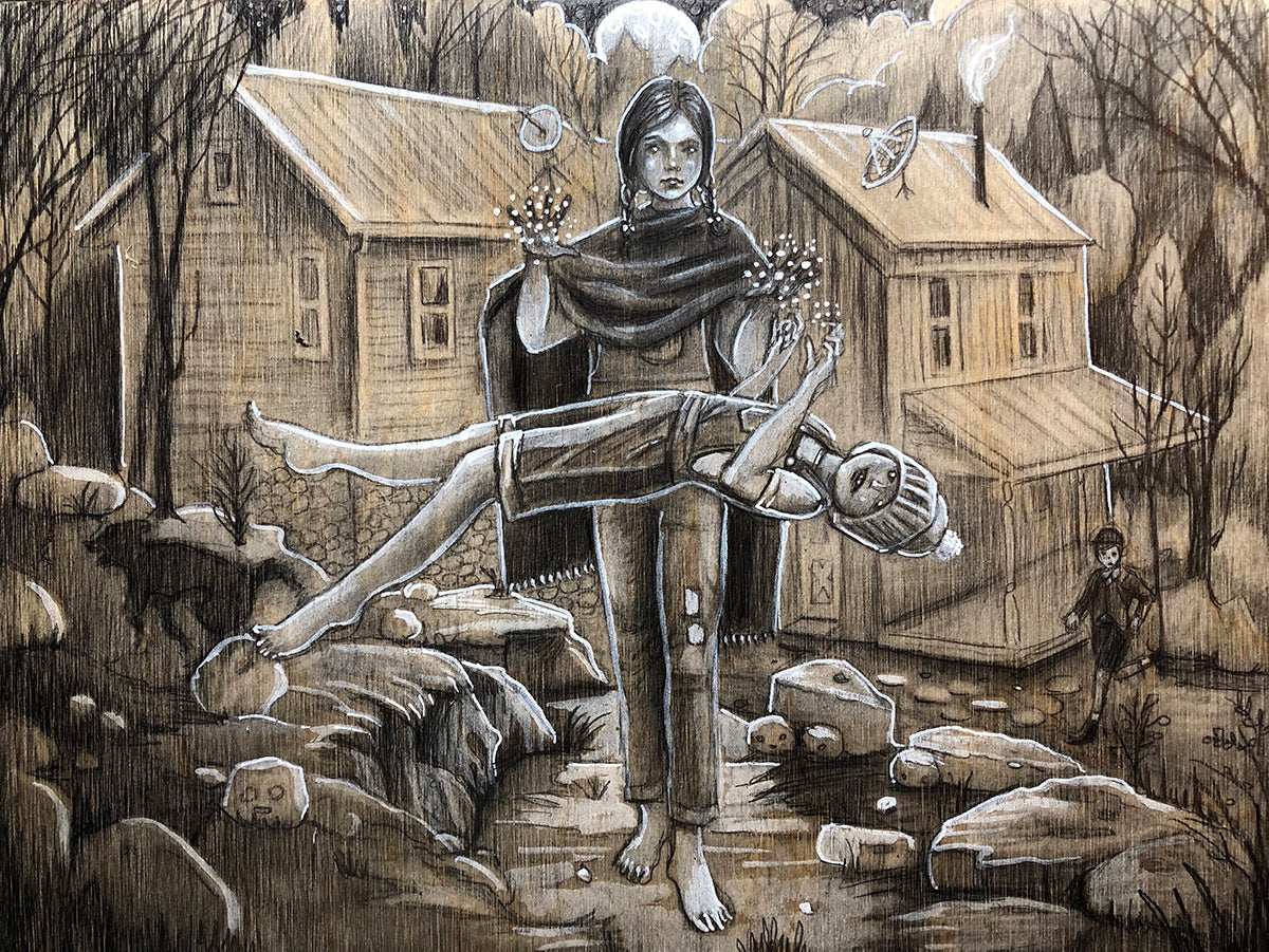 From the artist: For the past five years, I have been exploring the awkwardness of young human existence through my "Cryptotweens" paintings where the strangeness of being has mostly been portrayed in cryptid-inflected tweens and teens sporting scales or fur. Lately though, in an iteration of this series called "Secret Self", I portray most of the Cryptotweens as actual "normal" humans whose strangeness is exhibited in extraordinary talents like levitation or hidden characteristics like a spiky, charcoal heart.