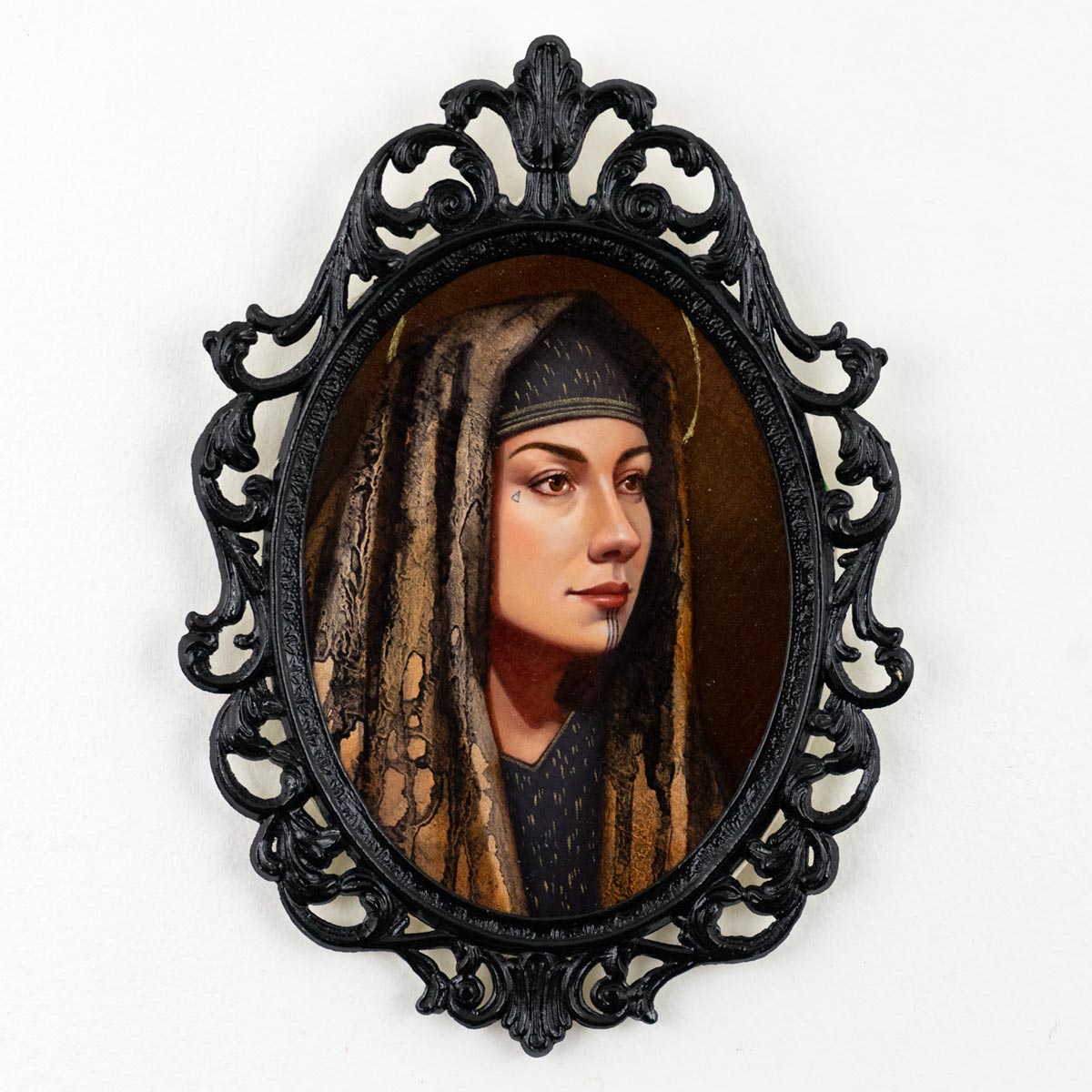 • Jasmine Worth creates depictions of the symbolic and surreal using techniques and imagery of classical painting. Worth draws on personal experiences that parallel the larger cultural experience, the subconscious being a gateway for commentary on the world around her. The seamless blending of the iconic with the visceral blurs the line between what is sacred and what is profane.