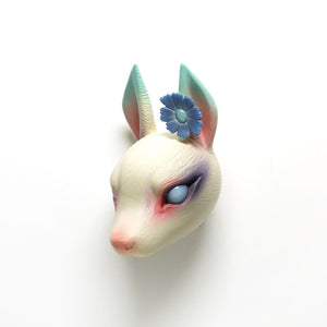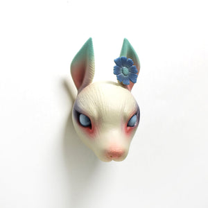 • Erika Sanada's early inspirations stemmed from creatures and characters of horror films. Watching these stories were a way for her to escape unpleasant realities during childhood. She creates intricate, hairless ceramic creatures—often adorable but also unsettling and bizarre. Sanada is represented by Modern Eden Gallery in San Francisco where the artist currently lives and works.