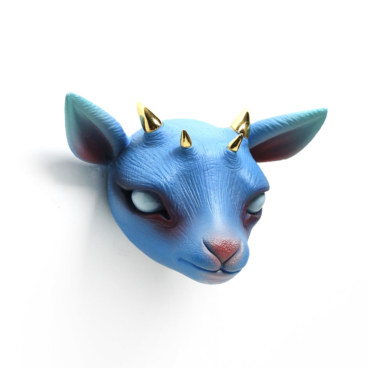 • Erika Sanada's early inspirations stemmed from creatures and characters of horror films. Watching these stories were a way for her to escape unpleasant realities during childhood. She creates intricate, hairless ceramic creatures—often adorable but also unsettling and bizarre. Sanada is represented by Modern Eden Gallery in San Francisco where the artist currently lives and works.