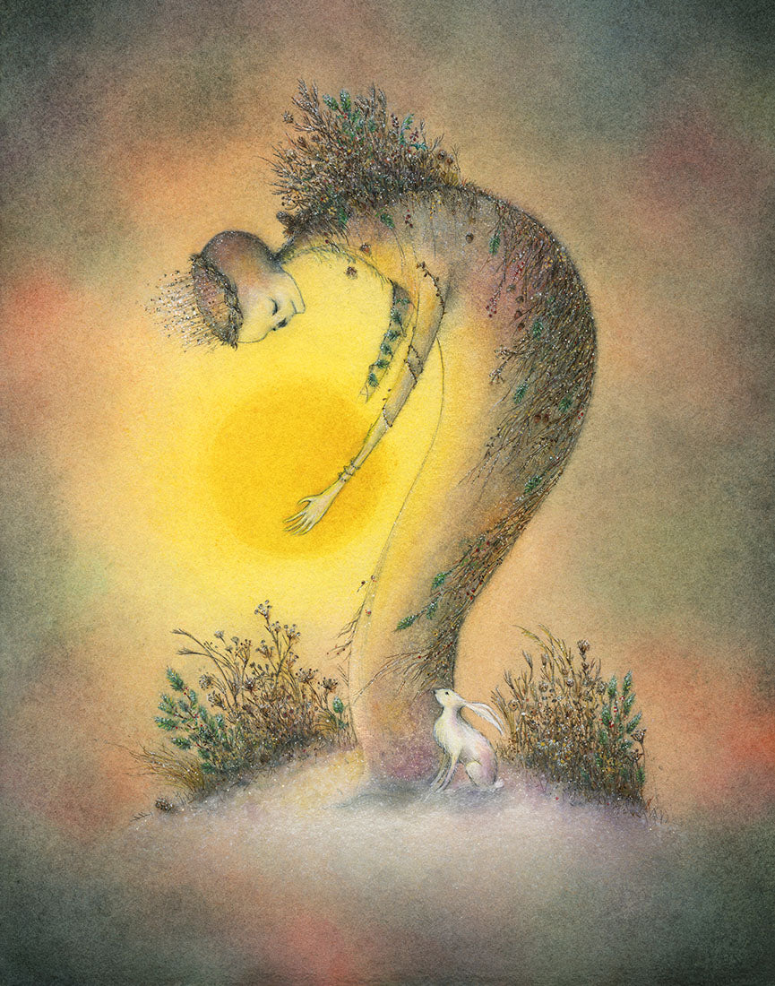 Jeannie L Paske is a self-taught artist from Portland, Oregon who creates introspective work under the name Obsolete World. Using a mix of watercolor, charcoal, pastel, graphite, varnish and ink, she designs richly textured illustrations of peculiar creatures in thought-provoking settings. The mysteries of life, loss and loneliness are reoccurring themes, and her compositions often focus on the strange and unexplained. Many of her pieces reference philosophy with a nod to both the melancholy and humorous. Her soft sparse environments suggest a warm, dreamlike state, and the emotional imagery paired with her poetic titles help to convey a sense of gentle curiosity in her work.