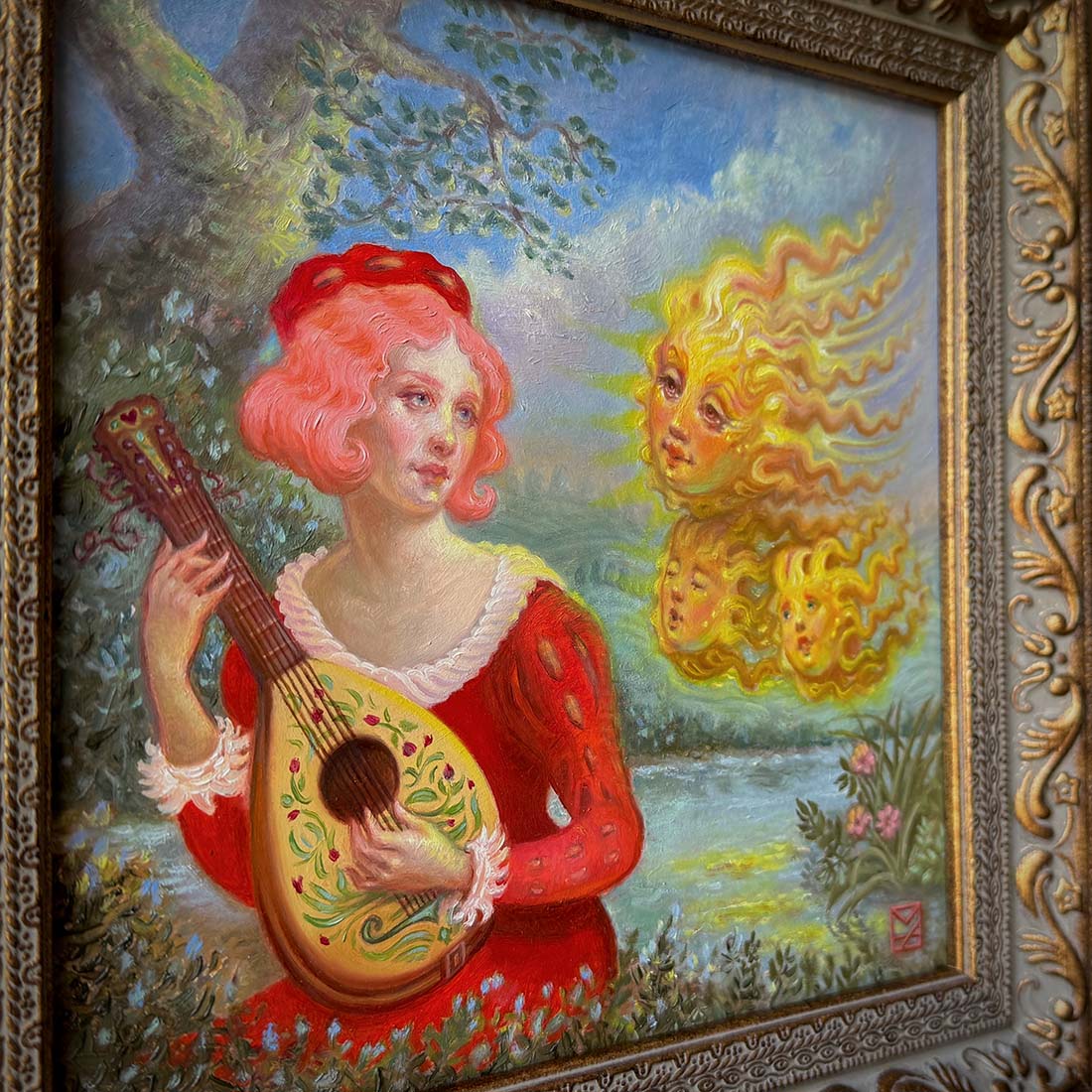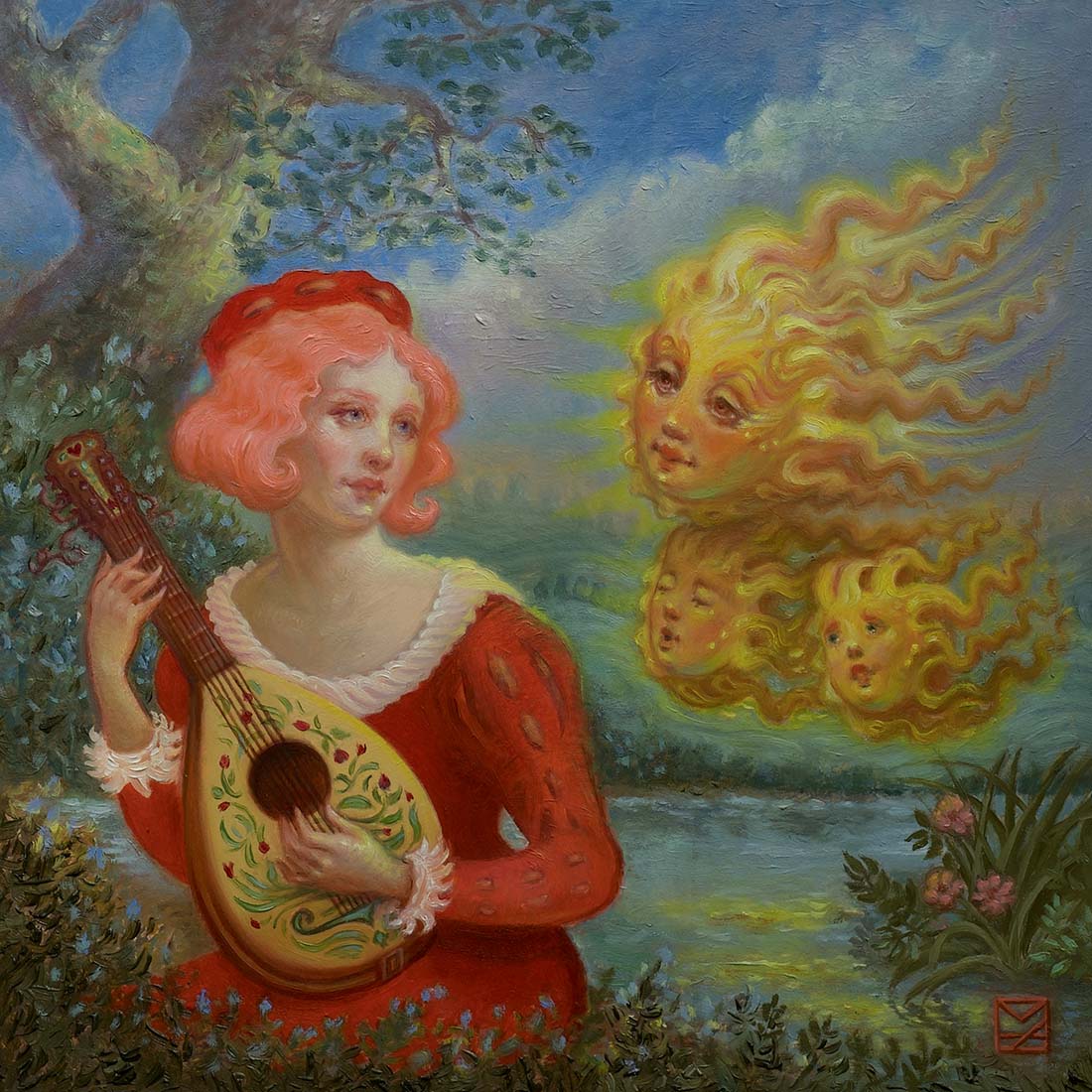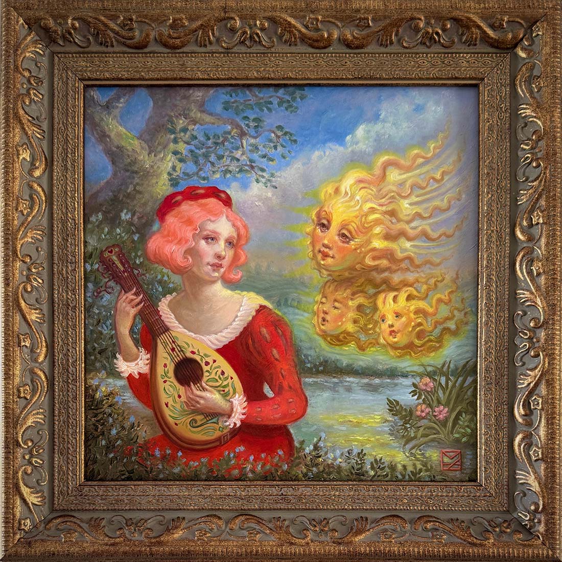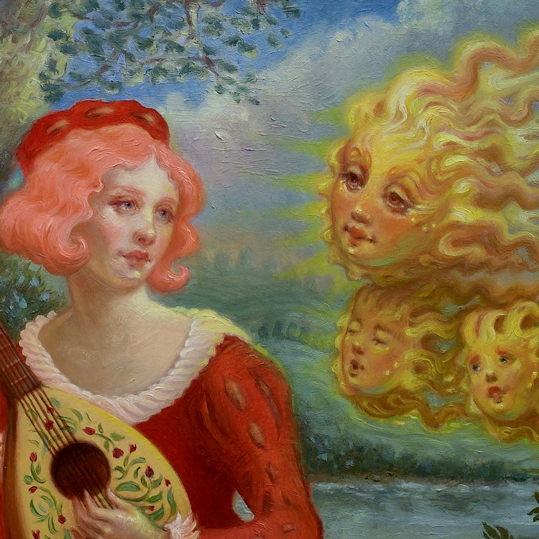 • Meg Allan works in oil, graphite and charcoal and prefers to work in a layered, detailed manner. Forever a classical painting enthusiast, with strong influences from Bouguereau and Waterhouse, Meg’s work is steeped in layers of symbolism, myth, prose and spirituality.