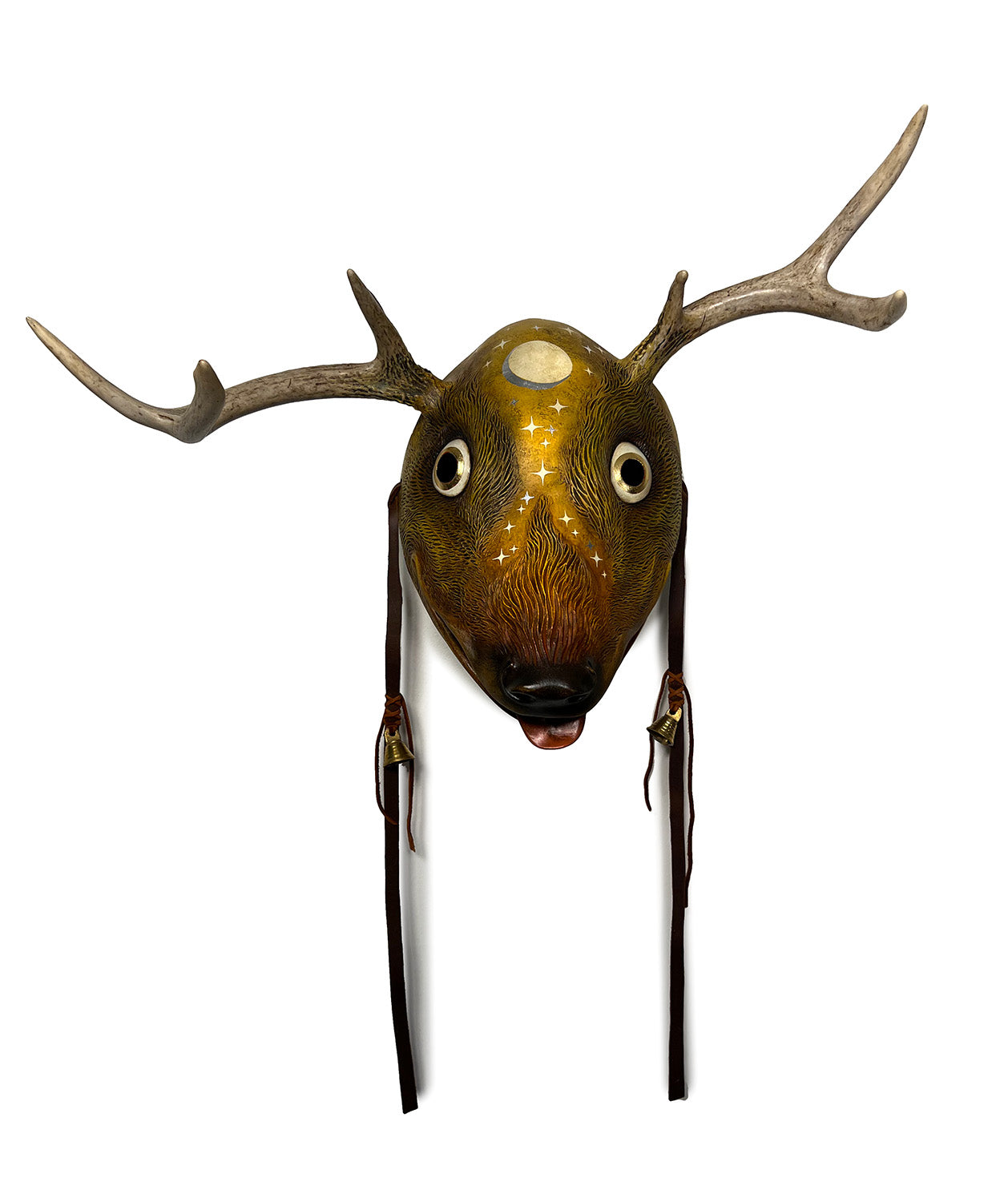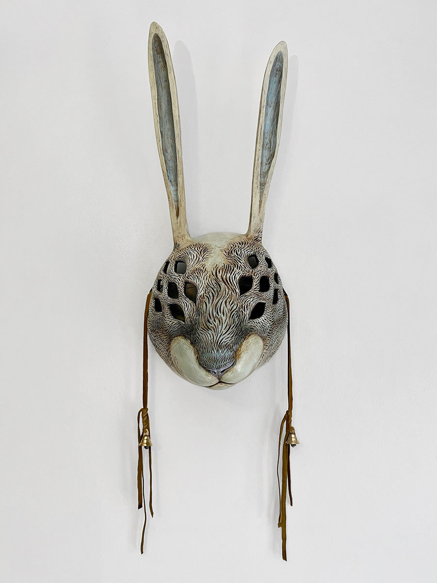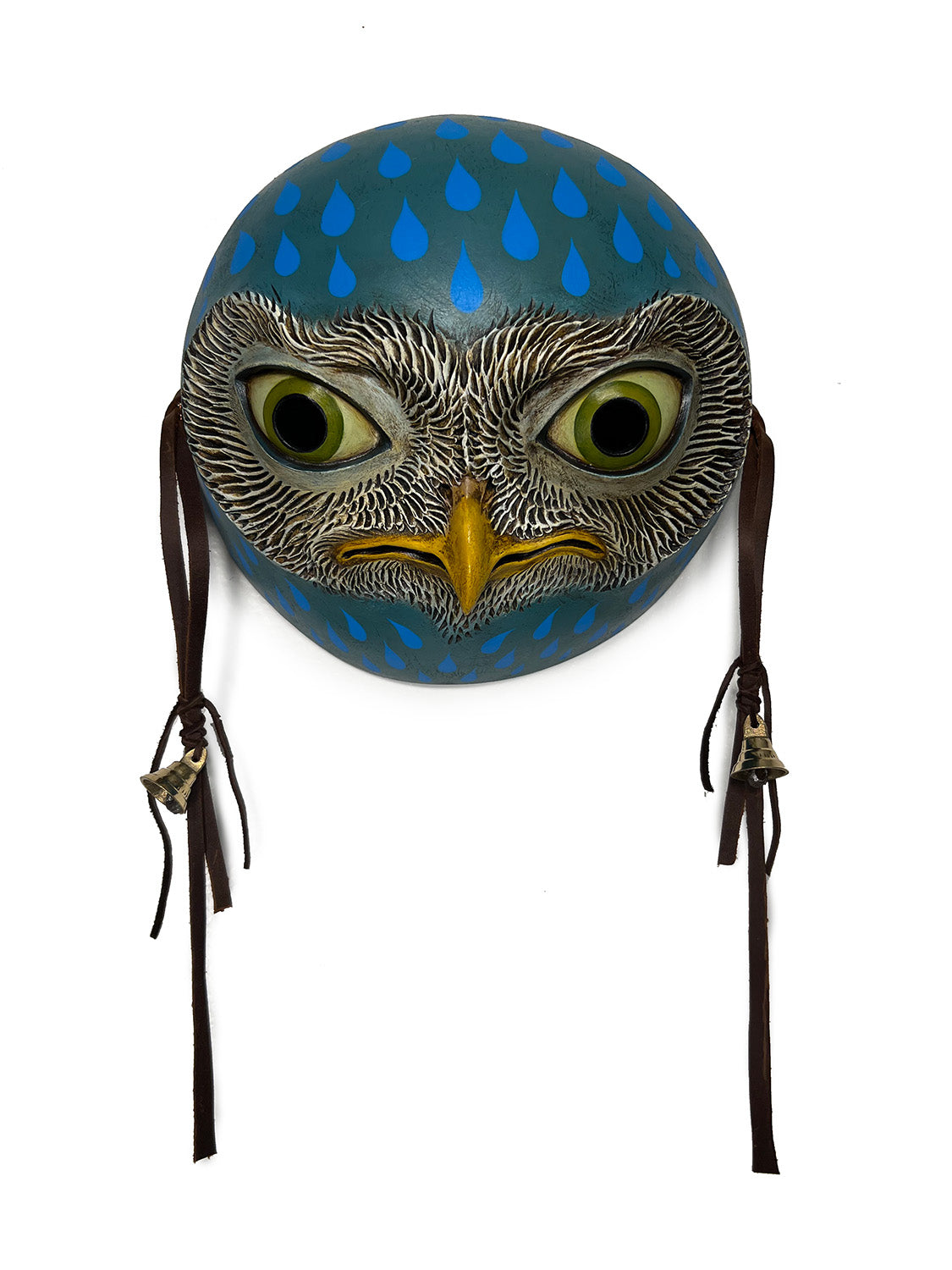 Kristen Egan is a mixed media artist who specializes in masks and small sculptures. Her creative process relies on the organic shapes of natural materials like gourds, antlers and tree branches. Adding details with carved wood, paper clay and acrylic paints, her work often juxtaposes bright patterns and ornamentation against raw or weathered surface textures. Kristen’s work explores themes such as evolution, predator-prey relationships, folk art and totemic imagery. Her pantheon of recurring animal characters are often inspired by species native to her home state, or mythologized elements of personal experiences. Kristen has worked as a freelance artist since graduating with a BFA from Alfred University in 2007. She currently works from her home studio in eastern Pennsylvania near the Appalachian Trail, and also has a public studio at GoggleWorks Center for the Arts in Reading, PA.