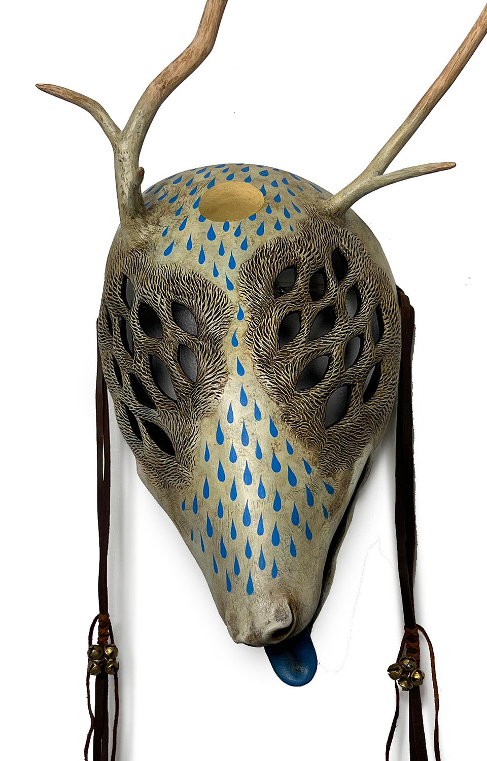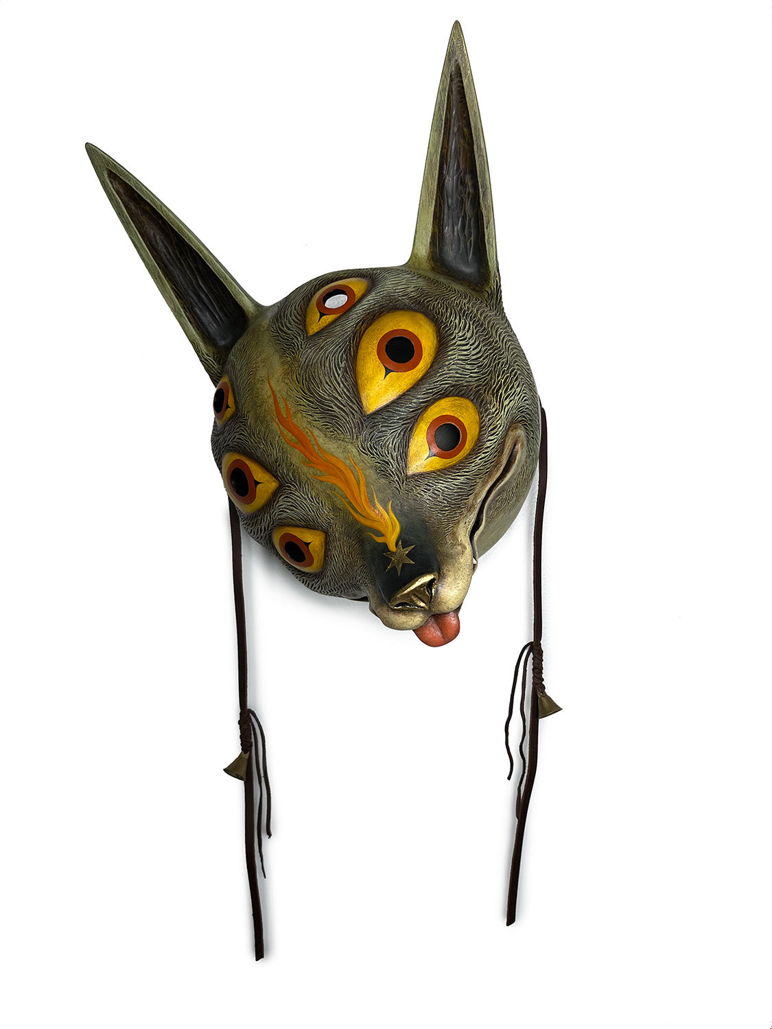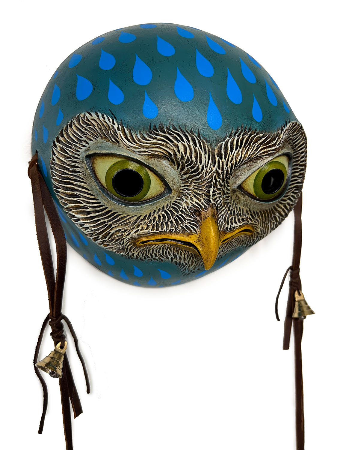 Kristen Egan is a mixed media artist who specializes in masks and small sculptures. Her creative process relies on the organic shapes of natural materials like gourds, antlers and tree branches. Adding details with carved wood, paper clay and acrylic paints, her work often juxtaposes bright patterns and ornamentation against raw or weathered surface textures. Kristen’s work explores themes such as evolution, predator-prey relationships, folk art and totemic imagery. Her pantheon of recurring animal characters are often inspired by species native to her home state, or mythologized elements of personal experiences. Kristen has worked as a freelance artist since graduating with a BFA from Alfred University in 2007. She currently works from her home studio in eastern Pennsylvania near the Appalachian Trail, and also has a public studio at GoggleWorks Center for the Arts in Reading, PA.