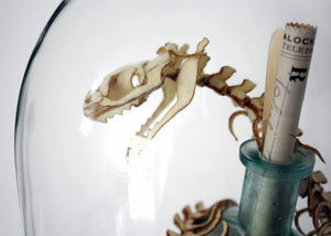 Lana Crooks loves the antique, the creepy, the cute and the mysterious. A textile sculptor by trade she resides in the depths of Chicago, IL. Constructing creatures from fabrics and found objects, she is a purveyor of faux specimens and soft curiosities. Sought after for her pattern-making abilities, Lana has frequently been spotted teaming up with other artists to breathe three dimensional life into their illustrations. Crooks is also a member of the OhNo!Doom collective in Chicago and the gallery director for Clutter Gallery in New York. But, on an average day, you can find her in the studio surrounded by skulls, old books, model ships, faux fur, glass eyes, a menagerie of stuffed friends and a cat named Tanuki.