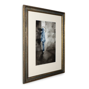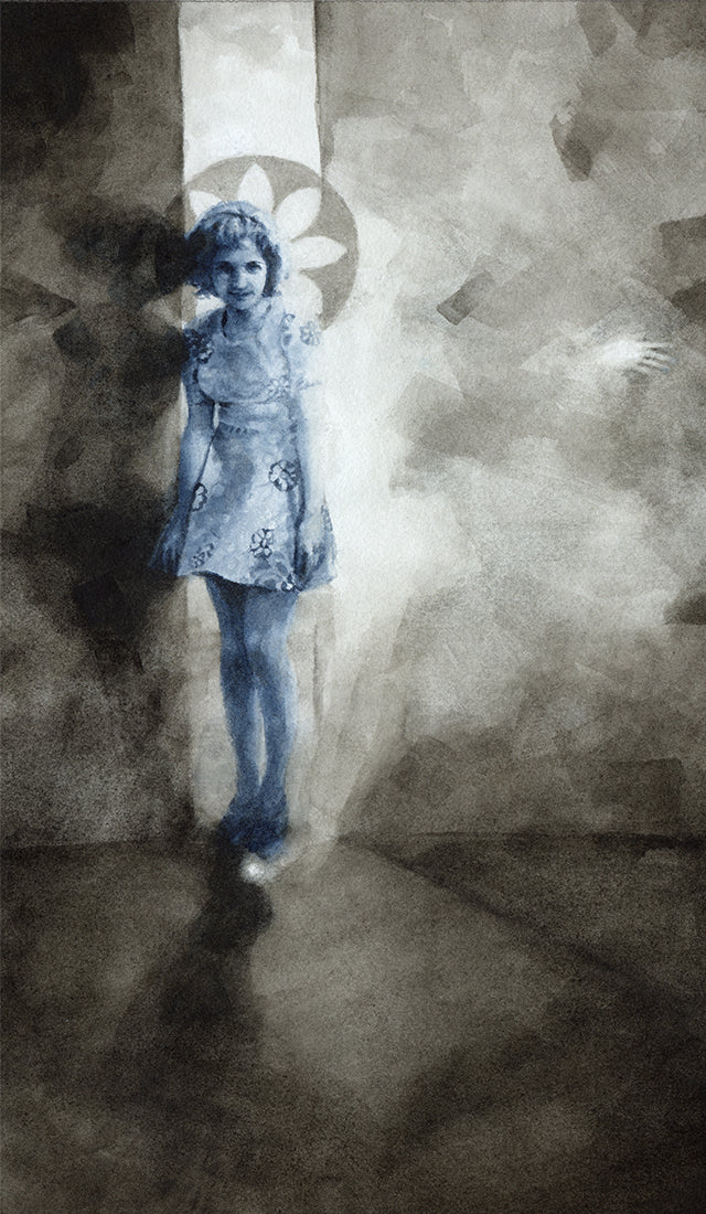 The Benz & Chang paintings are “fake vintage photos” rendered with watercolor and/or walnut ink. They are dreamlike and figurative. Most of the paintings appear to be photos from the early 20th century, and they reward a second or third look with details that can be easy to miss. Figures appear with twins, crowns, wings, ghost limbs, halos, odd lights and shadows. Using this imagery, Benz and Chang explore transformative life experiences such as facing fear, making life-changing decisions, grieving losses, having mystical experiences, or confronting mortality.