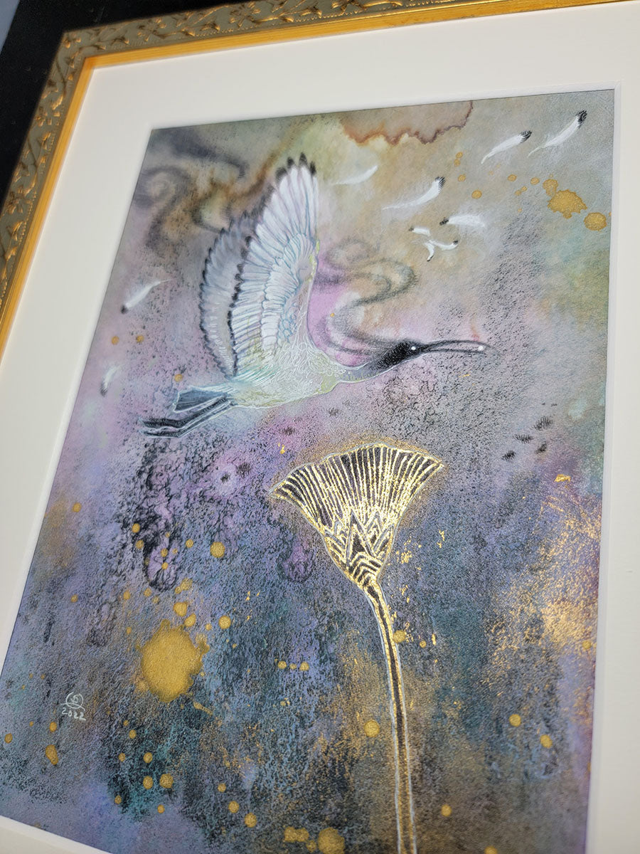 • Watercolor and gold leaf