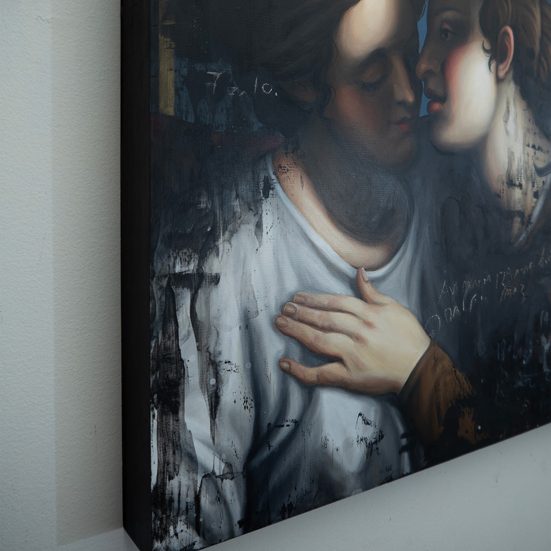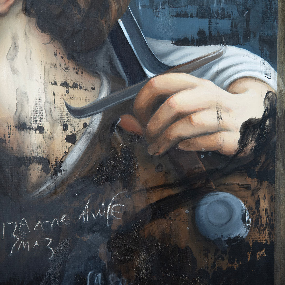 Inspired by her time studying the old masters first hand, MacLean’s paintings combine the old with the new, reproducing historical portraits by hand before applying contemporary and experimental methods such as fluorescent spray paint, re-harvested artists’ mediums and destructive techniques.