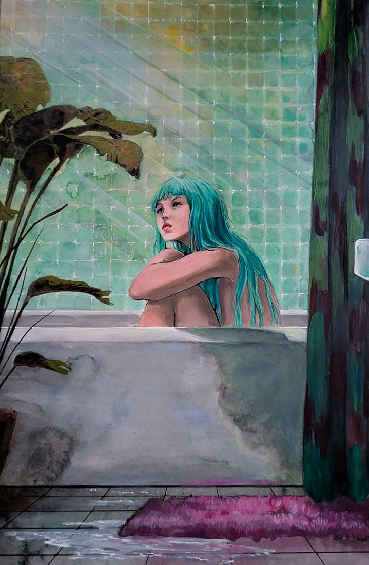 Crystal Annette James, known professionally as Cris James, is a watercolor and oil painter whose work captures intimate moments of reflection, vulnerability, and emotional quiet. Born in Denver, Colorado and raised in Las Vegas, Nevada, James now lives and works in Richmond, Virginia, where she continues to develop a practice rooted in mood, memory, and the subtle psychology of everyday scenes.