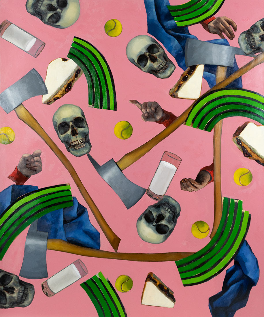 Matthew Robertson was born and raised in San Francisco and graduated from the Academy of Art University in 2012 with a BFA in illustration. He currently lives and works in Berkeley, California. Robertson’s technical oil paintings are simultaneously chaotic and controlled as he masterfully weaves the two components into one canvas to intuitively explore the tenuous balance between real and abstract forms. The new series vibrates with a sense of innocence described by bold colors, geometric forms, and spontaneous lines which merge together harmoniously with an expert sense of realism, to create a body of work that is both nostalgic and contemporary.