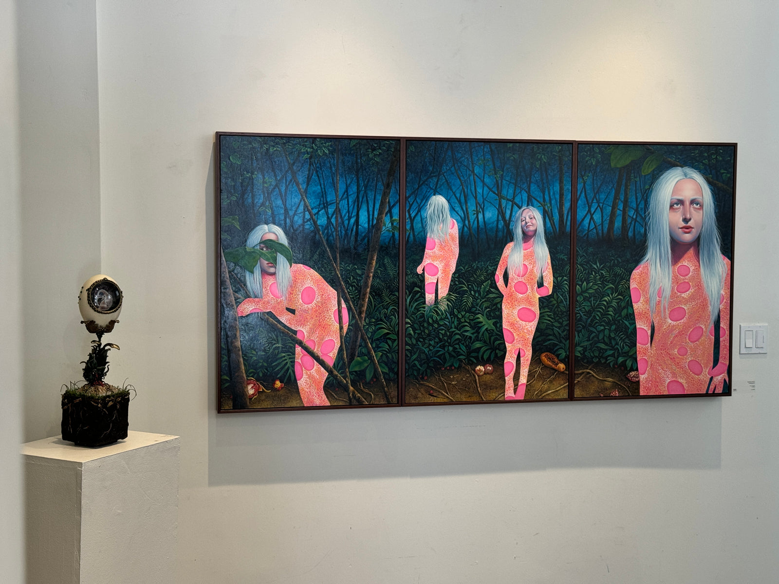 At 21 her darkly humorous paintings caught the eye of a local gallery who provided the platform for her first solo show. At 22 her work was being exhibited in LA.