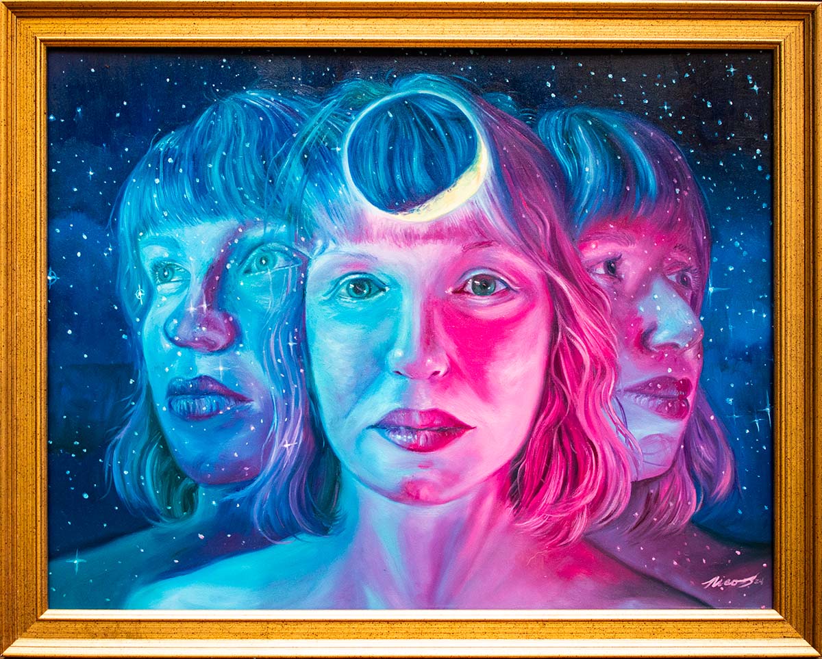 Nico Cathcart is a painter and muralist hailing from Toronto, Ontario, and currently living in Richmond, Virginia. She strives to discuss Intersectional feminism and climate change in her highly-colorful realistic works which often include local flora and fauna, as well as the female form. The artist is in the process of going deaf, relying on hearing aids and lip reading to communicate. She often includes birds in her work as a nod to her disability. You can find a TEDTalk about her work, and disability here. A veteran of the past 3 RVA Street Art Festivals, and International Invitational Wall/Therapy , she has murals across the country. Her work has been shown at the Virginia Museum of History and Culture, and the Hermitage Museum in Norfolk, as well as galleries across the continent. In 2020, Nico was honored as an Agent of Change for her use of activism in her art by the Virginia Museum of History and Culture, and was the recipient of the 1708 Gallery Space grant.