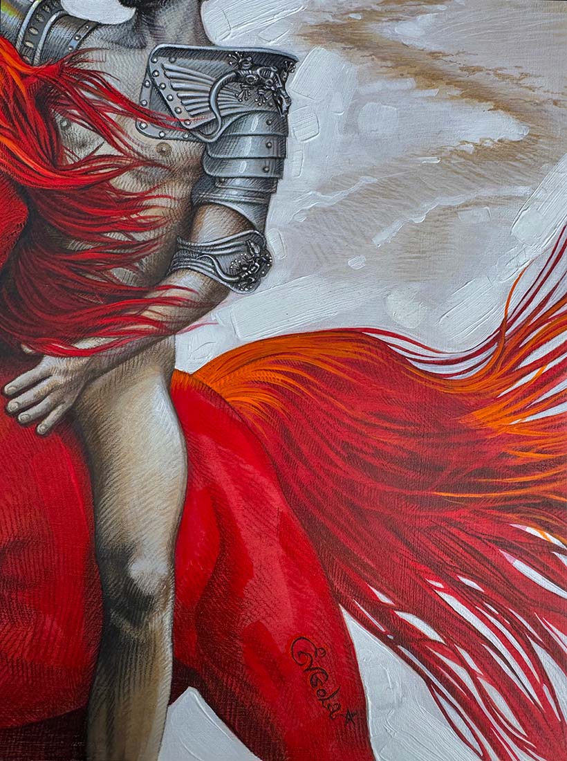 Using a variety of media, Evgola’s art joins realistic portraiture with imaginative, often surreal narratives to highlight and reveal her subject's personalities and stories. She intends her paintings and drawings to be portals into a mystical realm, one which showcases a myriad of humans, animals and fantastical creatures, that seek to express their secret through esoteric language.