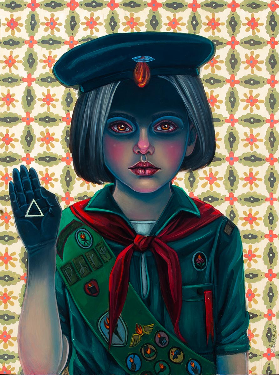 Lori Nelson is a Brooklyn and Catskills-based painter whose narrative work incorporates aspects of traditional portraiture, Magic Realism, and vintage story-book illustration. In her ongoing "Cryptotween" series she explores the vulnerability and essence of what it means to be young and monstrous. Nature and technology also play prominently in her paintings as do the “homey” aspects of her homespun childhood built around self-reliance in a religious household in the West.