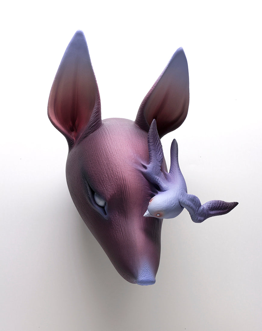 Erika Sanada's early inspirations stemmed from creatures and characters of horror films. Watching these stories were a way for her to escape unpleasant realities during childhood. She creates intricate, hairless ceramic creatures—often adorable but also unsettling and bizarre. Her artwork has been published in Hi-Fructose Magazine, Hey! Magazine and Beautiful Bizarre Magazine. Sanada is represented by Modern Eden Gallery in San Francisco where the artist currently lives and works.