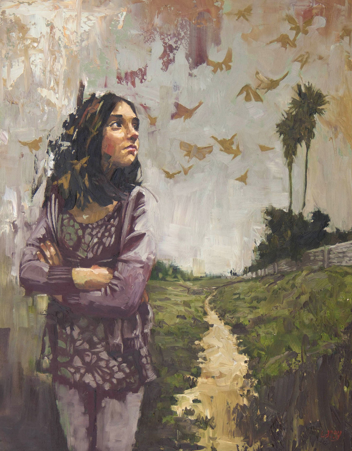 • Lacey Bryant lives in the SF bay area where she paints almost every day. Her expressive oil paintings capture haunting narratives between her subjects. Characters inhabit a realm of strange, nostalgic sweetness with undercurrents of darkness and mystery. When Lacey isn’t painting, she likes to go hiking, knit, play with her cat, Hecubus and eat cupcakes.