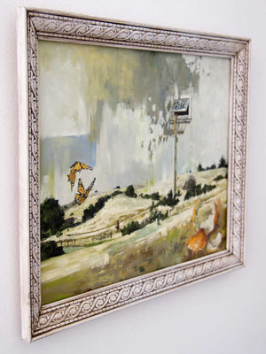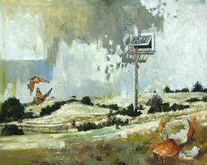 This ambitious new body of work includes painting done in anticipation of, and during an artist’s residency atChalk Hill in Healdsburg, CA, where Lacey escapes from her downtown San Jose studio into the Sonoma outdoors to work en plein aire. These new works reflect on the desire to run away and search for freedom, to a place where nostalgic twilight and silent country landscapes beckon ourEscape.