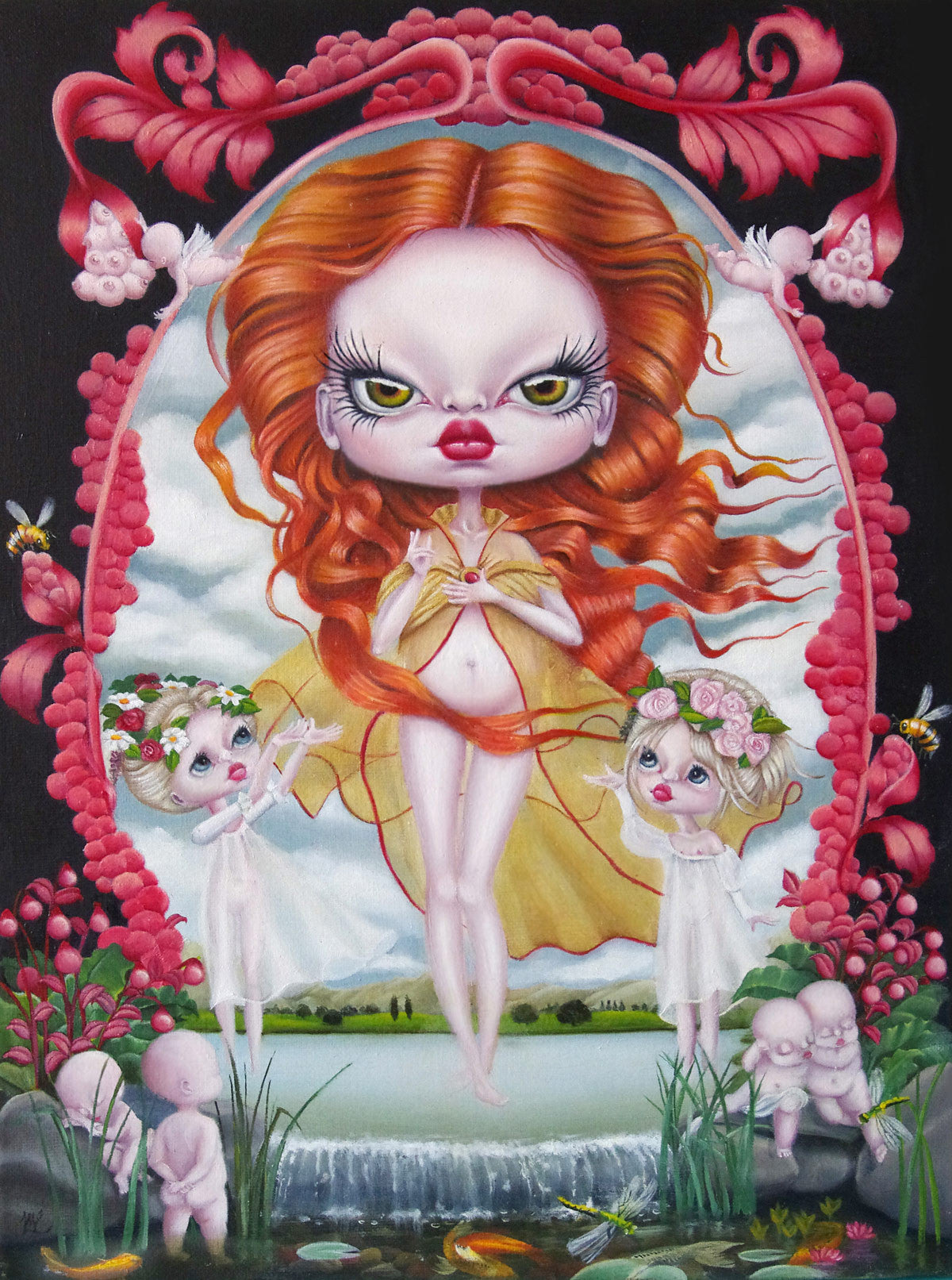 Marie Larkin is an Australian Pop Surrealist. Her art embodies an undeniably feminine oeuvre, meticulous execution and attention to detail. Works in painting, drawing and sculpture have been inspired by fairytale and nursery rhyme narratives, pop culture, beauty and the feminine persona.. She creates richly coloured, finely detailed, alternate worlds inhabited by beautiful girls, strange and mesmerising, with expressive eyes and dark natures. Most recently, female characters have an undeniable feminine force, strong, empowered and aloof. Her bodies of work continue to mature, gaining greater sophistication of style and consistency throughout.. Paintings and drawings retain her signature women who embue the works with narrative and emotional content.