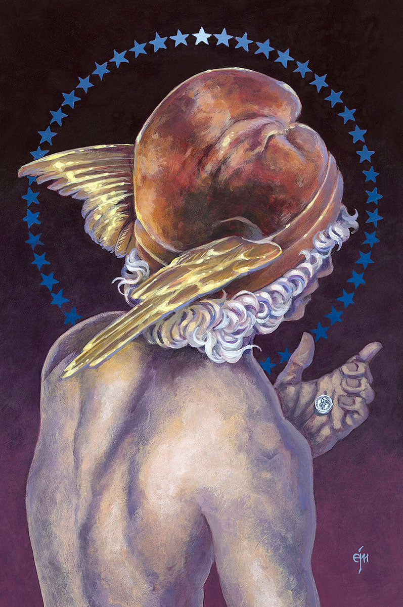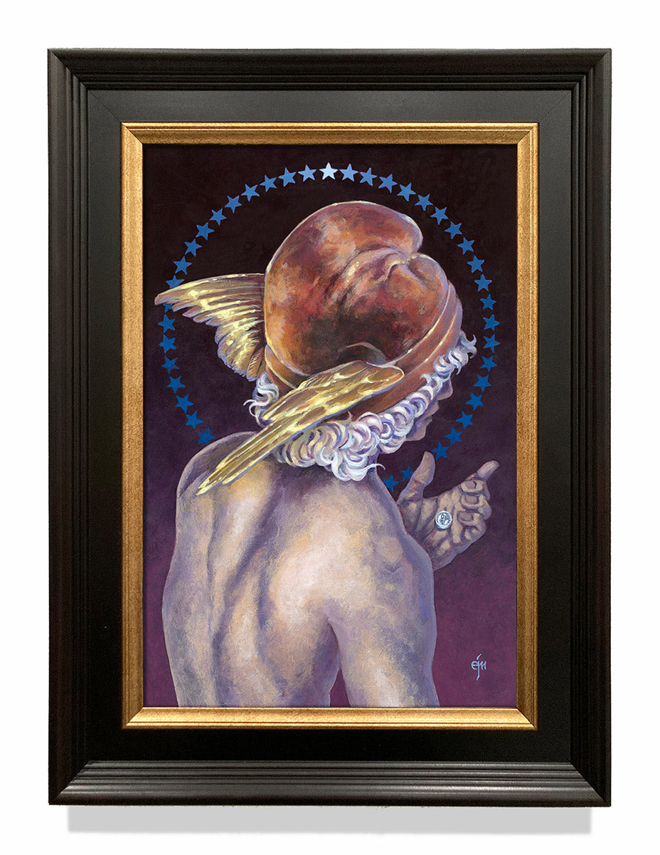 Having been simultaneously exposed to a wealth of literary, musical and artistic history, as well as the dawn of the internet and the information age, his work chronicles an effort to marry the rich cultural legacies of Old World Europe and 21st century America. His work often re-imagines classical themes from legend and myth via contemporary subject matter, frequently in a narrative style. His paintings are fables, featuring totemic animal archetypes and talismanic objects.