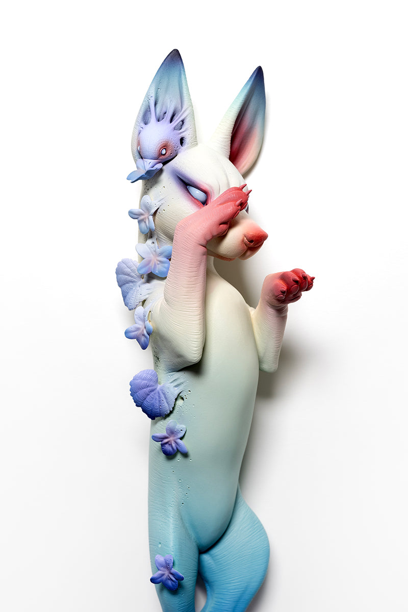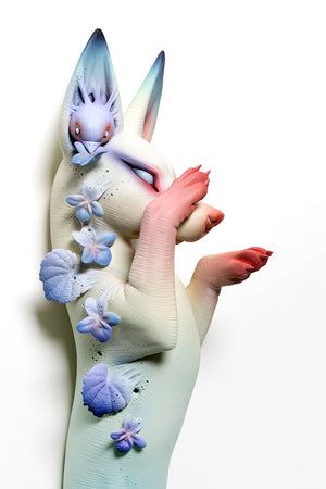 Erika Sanada's early inspirations stemmed from creatures and characters of horror films. Watching these stories were a way for her to escape unpleasant realities during childhood. She creates intricate, hairless ceramic creatures—often adorable but also unsettling and bizarre. Her artwork has been published in Hi-Fructose Magazine, Hey! Magazine, and Beautiful Bizarre Magazine. Her recent works are a part of the permanent collection of the Crocker Art Museum (Sacramento) and are currently being exhibited at the prestigious Fondation Bernardaud (Limoges). Sanada is represented by Modern Eden Gallery in San Francisco where the artist currently lives and works.