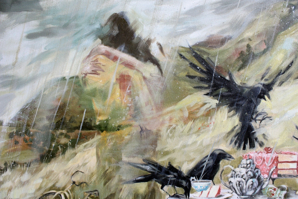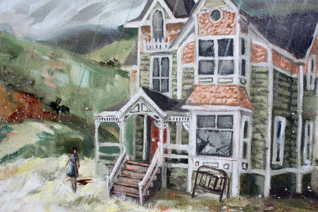 • Lacey Bryant lives in the SF bay area where she paints almost every day. Her expressive oil paintings capture haunting narratives between her subjects. Characters inhabit a realm of strange, nostalgic sweetness with undercurrents of darkness and mystery. When Lacey isn’t painting, she likes to go hiking, knit, play with her cat, Hecubus and eat cupcakes. She also paints scenery for theatre and haunted houses.