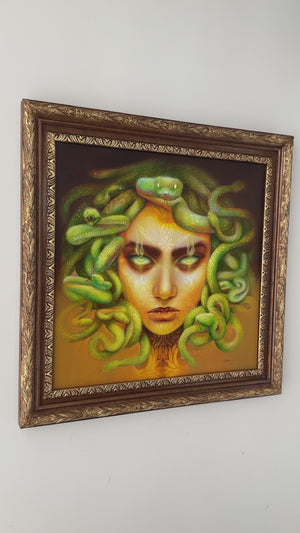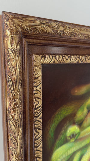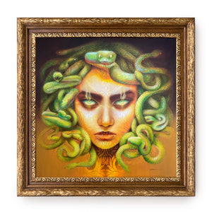 Lara Dann is an American artist who creates paintings that depict fantastical figures in the midst of contrasting themes – such as light and dark, lust and innocence, knowledge and naïveté. Her work is inspired by vintage and antique wallpaper tapestry which is featured in most of her underlying work. 2020 marked the debut of 'Sirens of the Zodiac', Lara Dann's gallery debut solo exhibition at Modern Eden Gallery followed by the 2021 exhibition, 'Dark Embrace'.