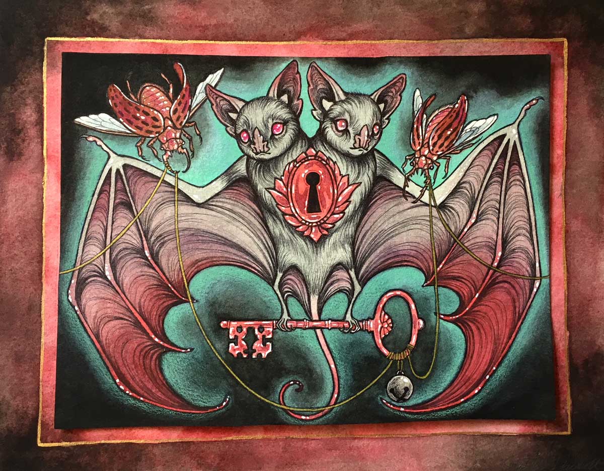 Caitlin Hackett is a Bay Area based artist, illustrator and creature concept designer. In her work, Hackett explores the relationship between humans and animals; the idea of the human denial of our animal nature and of humans as the dominant species, as well as the mutation of the animal created by the human interpretation of the animal.