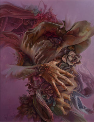 • Hugo D. Villa lives and works in Guadalajara. He graduated with a degree in Visual Arts with an orientation in painting from the University of Guadalajara, at the University Center for Art, Architecture and Design (CUAAD). With his work, mostly on easel, he has participated in various group and individual exhibitions in various states of the Mexican Republic, USA, Germany and Australia. His work is situated in the fluid between the figurative and the abstract, representing characters and figures in transformation, as if they were in a process of decomposition or emotional catharsis. They lead the viewer to make an analogy between the richness of mysticism and the energy of the psyche; and in turn, to the paradox between the exquisiteness of reality and its repulsion.
