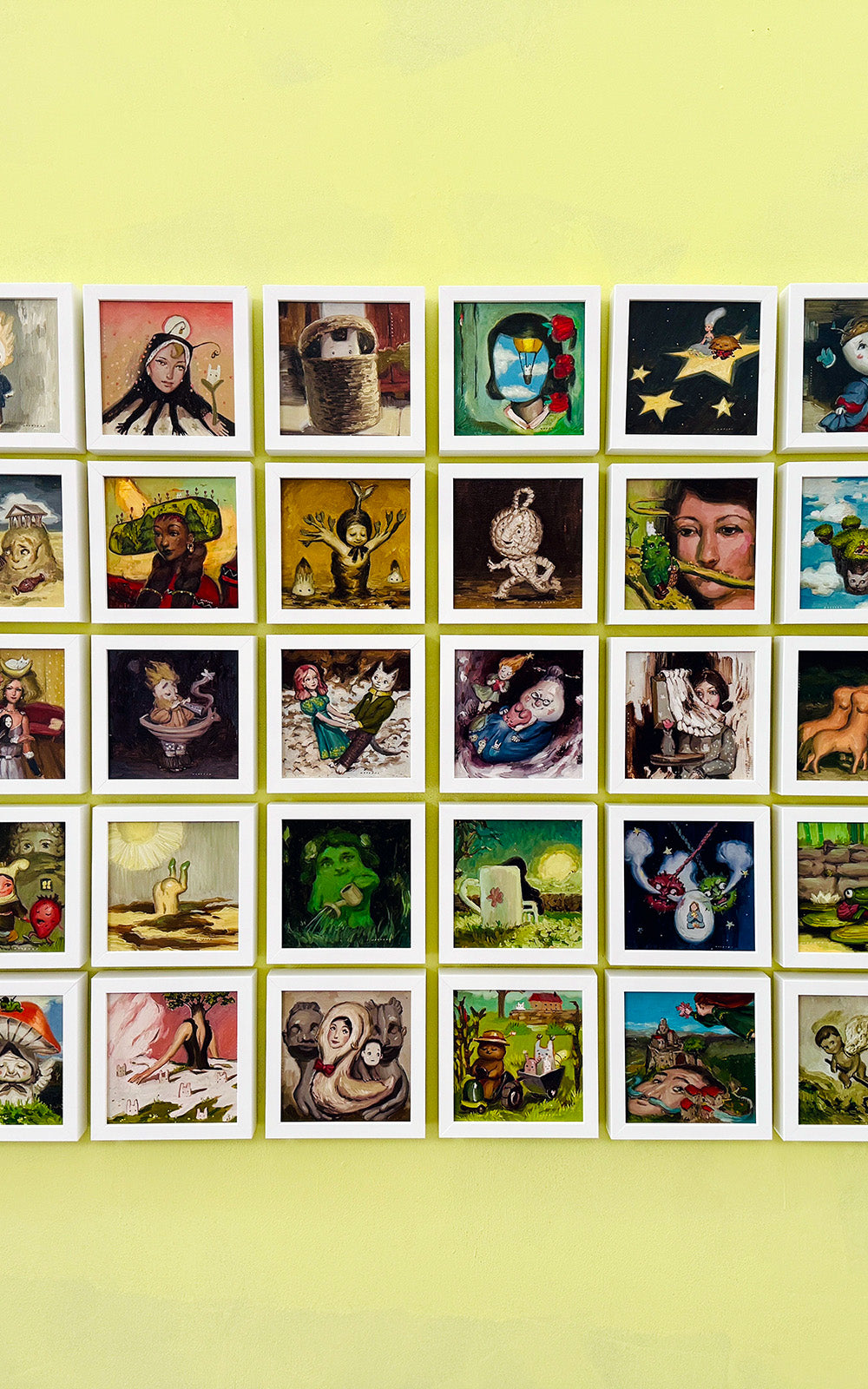 In "Imaginary Friends", Nadezda invites viewers into a constellation of fifty miniature worlds, each painted on a small panel yet vast in wonder. These small oil paintings shimmer with the spirit of invention, where landscapes breathe, rivers smile, and dreamlike companions emerge from the folds. Drawing from the same poetic imagination that fuels her multidisciplinary practice, Nadezda weaves together fragments of reverie, emotion, and play. Each work feels like a fleeting encounter with a friend from another realm. The artist’s lush brushwork and storybook sensibility reveal an unbroken thread between the seen and unseen. Through this intimate collection, Nadezda reminds us that the world of imagination is never far away—it lives in every small, magical moment waiting to be remembered.