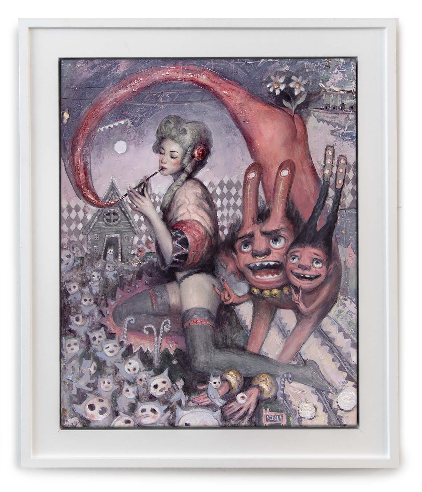 • Nadezda is a Russia-born (1985) artist based in the Bay Area of California. Focusing on narratives carefully gathered from the hidden chambers of her imagination and transformed into dreamscapes, her multifaceted artworks are the intimate windows into the inner world of her peculiar characters and creatures. Like a quilt stitched of many realities where personages and places are intertwined, overlapped, merged, and twisted - Nadezda’s mysterious world defies the mundane. Within these worlds, anything is possible. A non-linear creative process flows between different media and allows the artist to explore various vantage points of her creations. Such dynamic approaches inspire her mind’s eye to focus on the worlds within and evoke an uninterrupted, creative transmission which is then channeled through her paintings, drawings, sculpture, photography, writing and film.