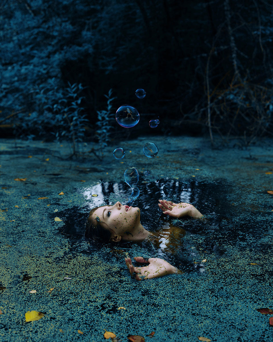 • Kindra Nikole is an internationally exhibiting artist based in Seattle. She experiments with photography, prop building, costume creation, and mixed media, drawing on natural settings to create surreal, otherworldly images. Kindra manifests fantastical realities in her images, oftentimes with a hint of dark allure. Her works tend toward vibrant, rich colors and typically feature a solitary figure immersed in nature.
