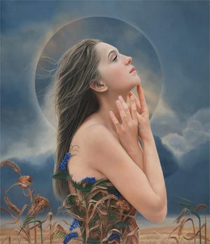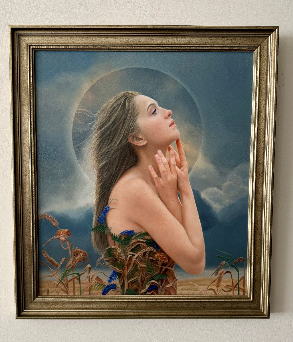 Lesley Thiel is an international award winning, figurative artist known for her highly detailed surrealistic and photorealistic paintings. Working in oils, she focuses on highly symbolic narrative pieces designed to tell a story of our relationship with the earth and the future of our species. She seeks to impress upon the viewer the interconnectedness between humanity and the natural world, whilst also trying to describe the multilayered complexity of our environment. Her paintings centre around young women as natural beings, and the female voice in society.