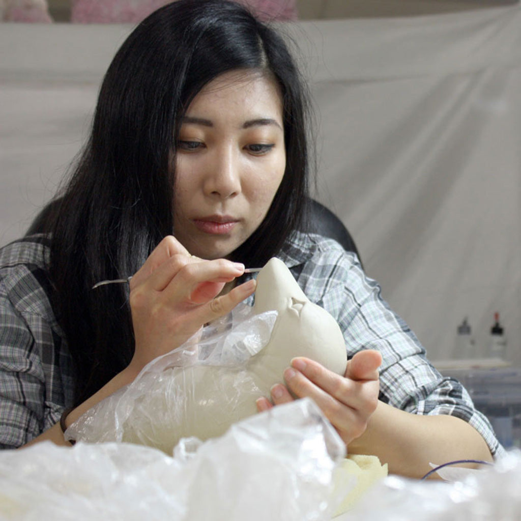 Erika Sanada's early inspirations stemmed from creatures and characters of horror films. Watching these stories were a way for her to escape unpleasant realities during childhood. She creates intricate, hairless ceramic creatures—often adorable but also unsettling and bizarre. Her artwork has been published in Hi-Fructose Magazine, Hey! Magazine, and Beautiful Bizarre Magazine. Her recent works are a part of the permanent collection of the Crocker Art Museum (Sacramento) and are currently being exhibited at the prestigious Fondation Bernardaud (Limoges). Sanada is represented by Modern Eden Gallery in San Francisco where the