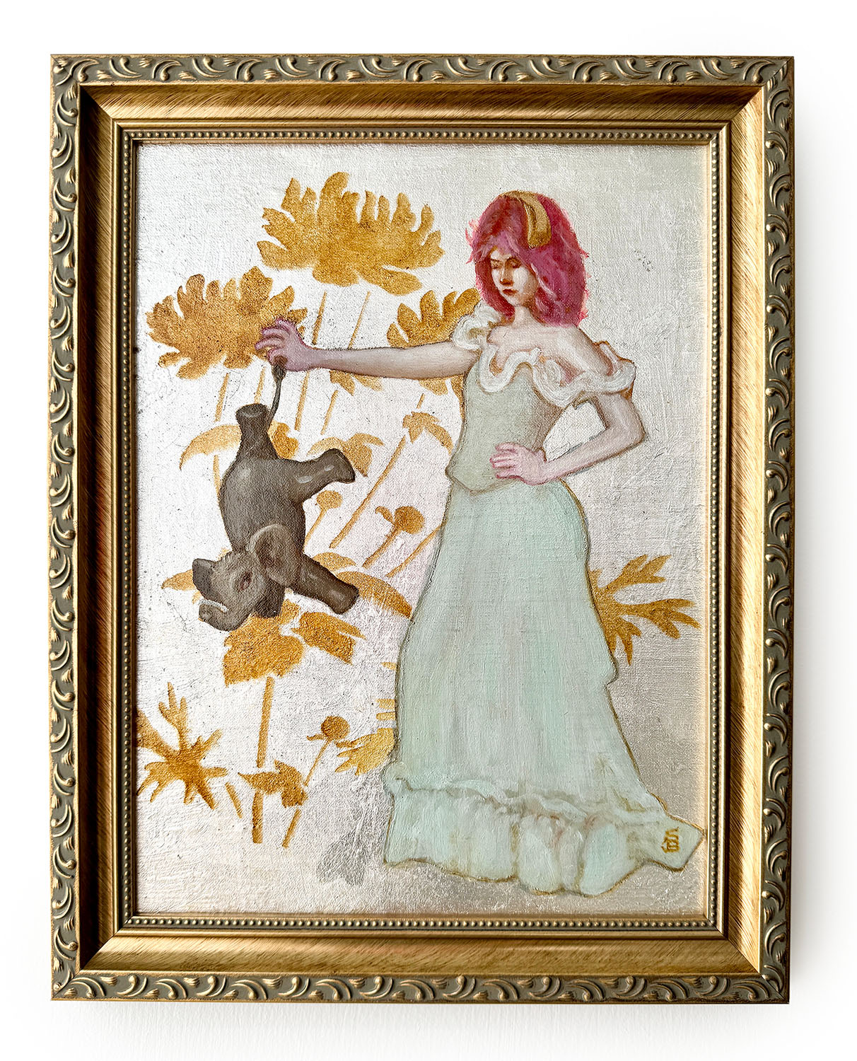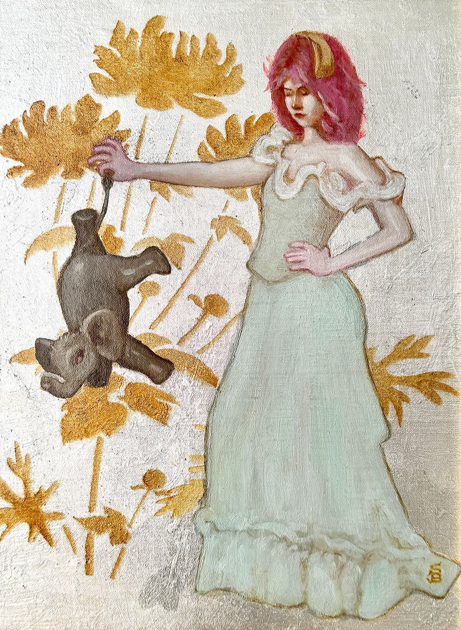 • Deirdre Sullivan-Beeman is a self-taught figurative and contemporary surrealist painter. She uses modified egg tempera techniques of the 14th century Old Masters to create works of magical realism that seem to glow from within. Celebrating the hard-earned wisdom of childhood, Sullivan-Beeman depicts subjects who are often young, hauntingly innocent, and teetering on the edge of naïveté and what lies beyond. The narratives, symbology, and illumination in her pieces emerge from someplace subliminal, a conjured realm of magic, mysticism, and mystery. She uses her personal dream journal to inspire her artwork, exploring Jung’s collective unconscious with an overt curiosity for the bizarre and the esoteric, especially alchemy, the tarot, and animal spirits.