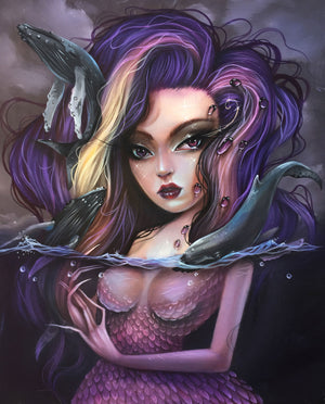 Utilizing a bold color palette and with a skillful hand, the artist portrays graceful and captivating subjects who embody both darkness and light. With a vibrant intensity, they encourage the viewer to let the extraordinary surroundings take over and encounter these beautiful, yet dangerous worlds.