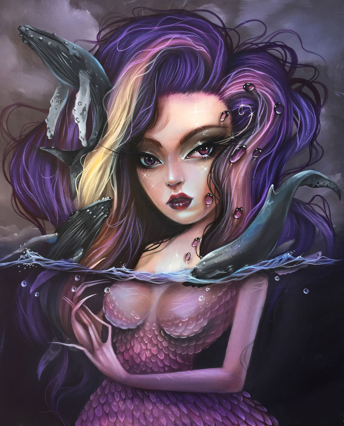 • Exhibition Statement from the Artist:Reverie’ is a collection of gorgeous creatures full of dangerous allure and intrigue. I depicted my muses in close-up portrait style as if they had posed and chosen the composition themselves, carefully casting their companions to represent who they are. They are greatly inspired for my ongoing love of beauty and fantasy, all depicted with a sense of dark appeal to emphasize that nothing is as it seems in any world, real or imagined.