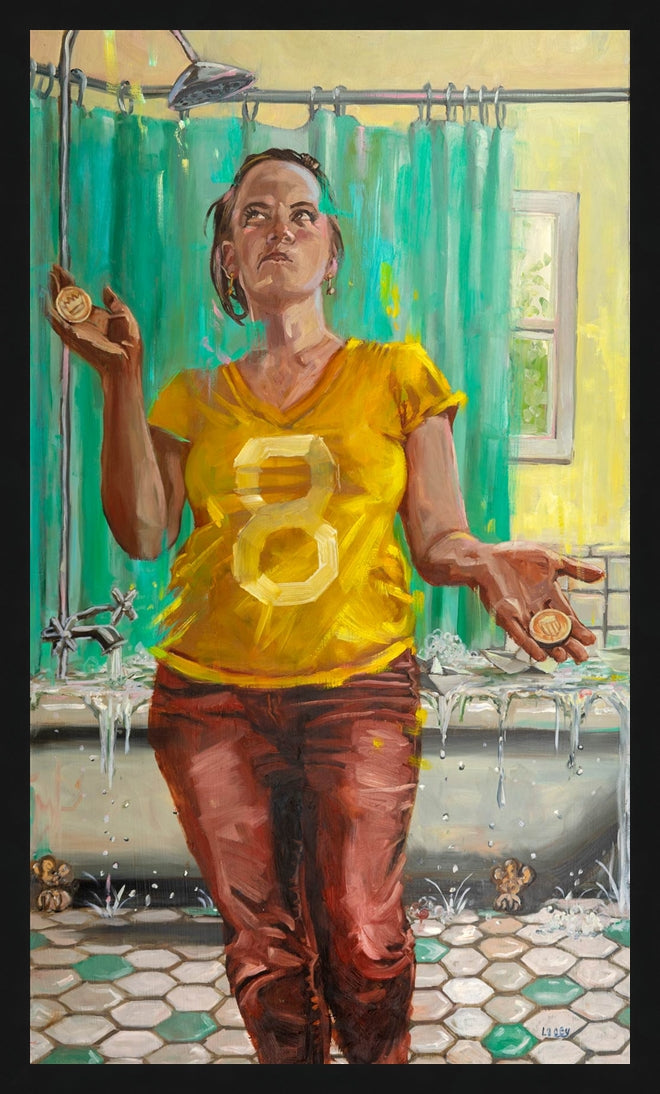 Lacey lives in the SF bay area where she paints almost every day. Her expressive oil paintings capture haunting narratives between her subjects. Characters inhabit a realm of strange, nostalgic sweetness with undercurrents of darkness and mystery. When Lacey isn’t painting, she likes to go hiking, knit, play with her cat, Hecubus and eat cupcakes.