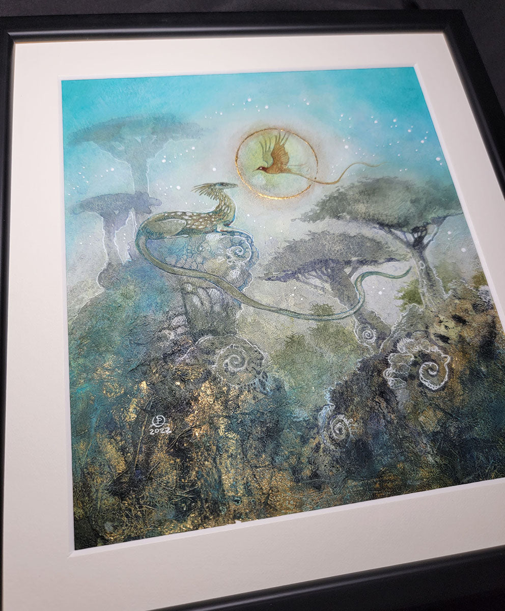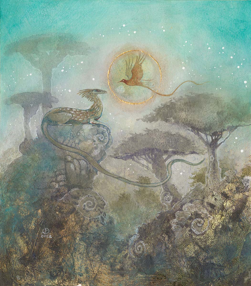 Stephanie Law's work follows in the tradition of the mythic arts. She is based in Oakland, CA. Her paintings explores a surreal otherworld, and the manifestations of desire and archetype when seen with a shifted perception. Much of her inspiration stems from mythology and folklore, mingled with the movement of dance, and the chaos of Nature's wild growth. She has authored and illustrated 4 books ("Dreamscapes", through North Light Books), a series on watercolor technique within a fantastical framework, and she is also the author and illustrator of the Shadowscapes Tarot (2009, Llewellyn Worldwide).