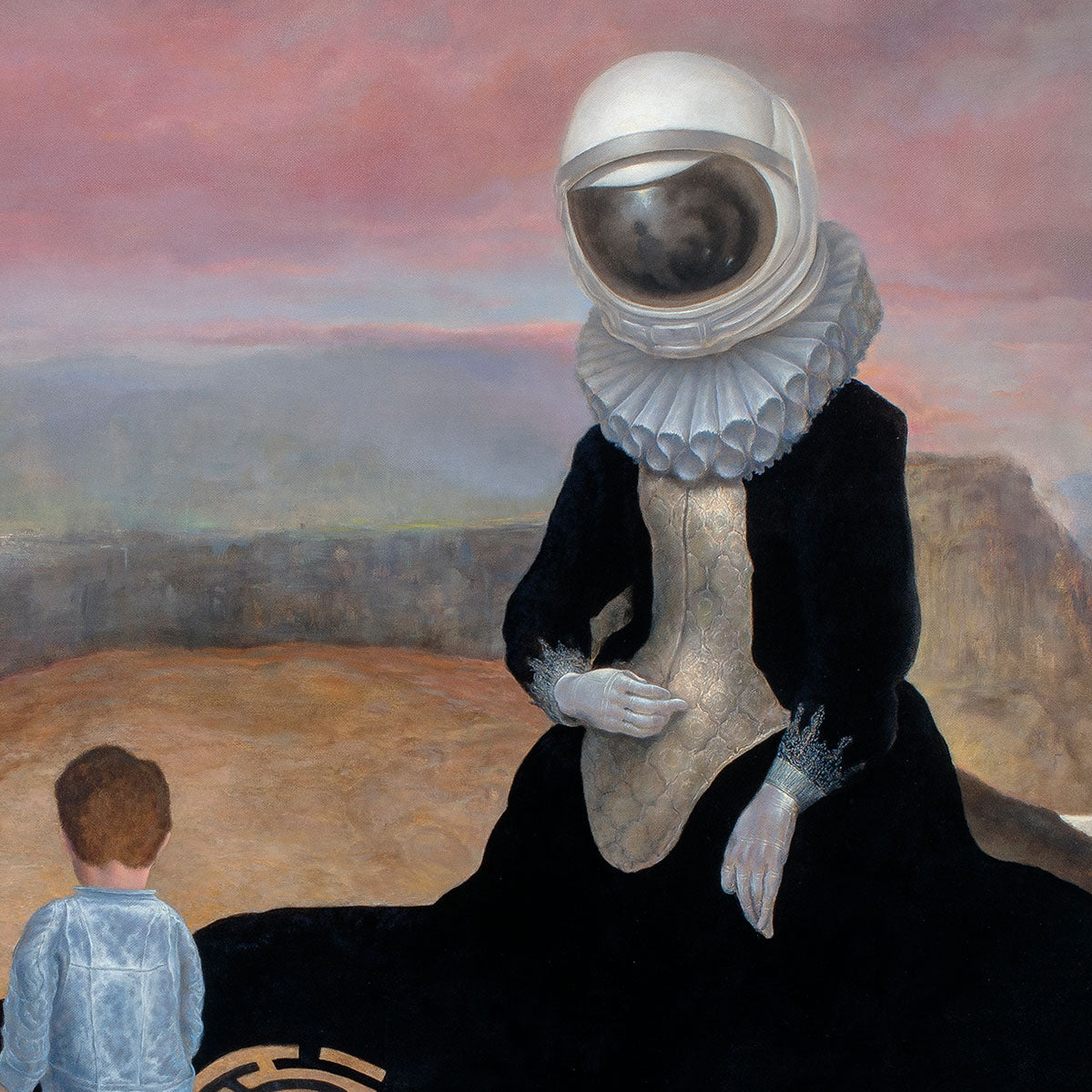 Chris Leib likes to contemplate whether the documenters of history have ever been giving us the true picture when it comes to the meaningful and momentous happenings that have occurred on our planet. Are the historical events of the western world presented to us via a machine engineered to manufacture our manipulation? With his latest ongoing series of paintings entitled ‘Eden’, Leib explores these concepts through iconic and symbolic imagery featuring a fabulous cast of astronauts and Bonobo apes. He transplants his characters into humorous scenarios, often set in historically significant surroundings, where they run amok and generally tamper with events as we know them. Painted with tremendous skill and personality, Chris’ works pull us into situations from eras gone by that pose intriguing questions and leave us wondering where the truth lies.