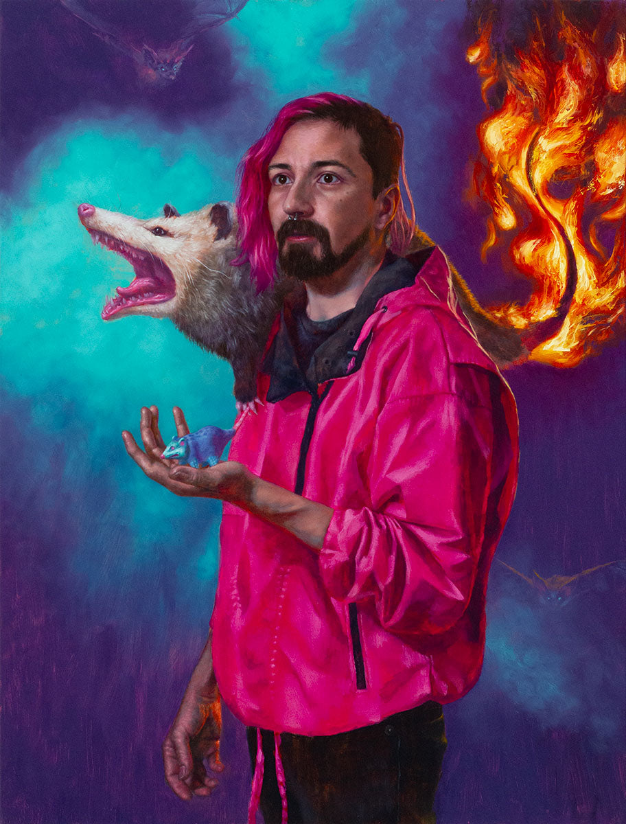 • Joshua Coffy was born in 1976 in Tuscarawas, Ohio. He is a self taught artist who works primarily in acrylic paints. The artists fuses vibrant colors with mixed media to create a sense of depth and juxtaposition in his artworks. His subject matter deals almost exclusively with the animal kingdom, making statements about the connection between man and beast. He now lives and works in San Francisco.
