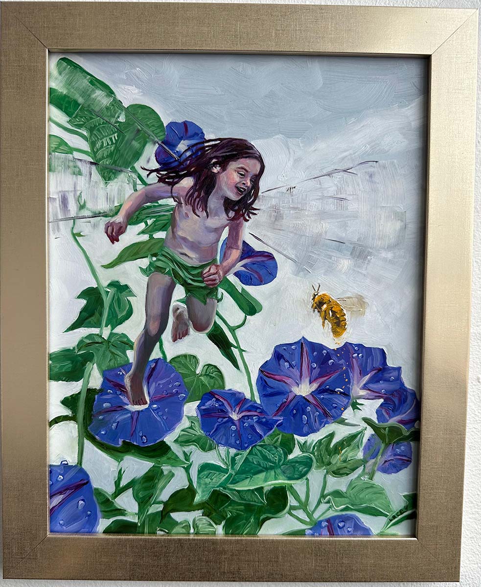 • Lacey Bryant lives in the SF bay area where she paints almost every day. Her expressive oil paintings capture haunting narratives between her subjects. Characters inhabit a realm of strange, nostalgic sweetness with undercurrents of darkness and mystery. When Lacey isn’t painting, she likes to go hiking, knit, play with her cat, Hecubus and eat cupcakes. She also paints scenery for theatre and haunted houses.