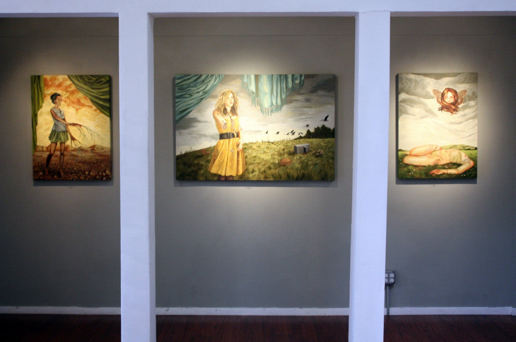 • Theatrically posed and surrounded by lush, illusory environments, the subjects of Lacey Bryant's works are like illustrations in a picture book written in an unknown language. The images are somewhat familiar but certain elements remains foreign. The stage is set in an imagined world of natural beauty beneath ominously stormy skies. It is a world poised between now and once upon a time. Bryant currently resides in San Jose, CA.