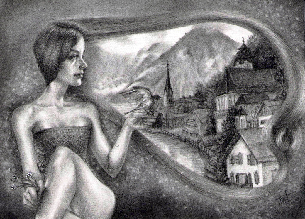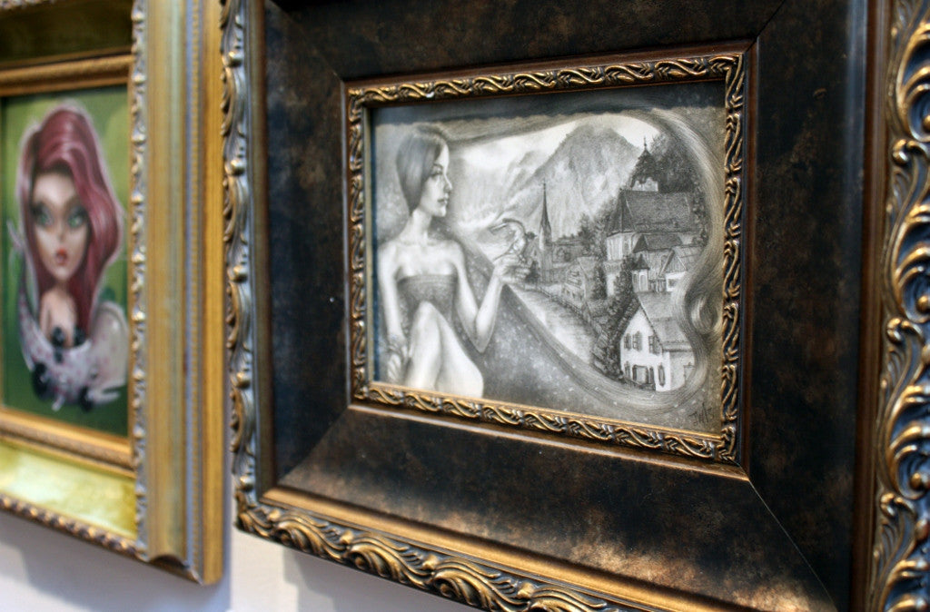 Jessica Ward is an American artist who works primarily in graphite to create powerful drawings that possess a strong sociological voice. She was born in Agana, Guam on May 14th 1982. Growing up she traveled and lived in many places around the world because her father was an Officer in the USAF. She attended Kendall College of Art & Design in Grand Rapids, Michigan and received a Bachelor’s degree in Fine Art -Drawing with a minor in Illustration. She continued to study at Kendall for a Master's in Fine Art - Drawing until moving to Los Angeles, California instead to break into the art world. There she had her first gallery show in 2008, and has been exhibiting her work in galleries internationally since. Ward’s art work is inspired by eating disorders, which she herself has struggled with with since adolescence. Her work focuses mainly on the female form and portrays women often wrapped in and bound by hordes of the female crowning glory, hair. These magical sorrowful tales are encrypted with messages about human sexuality, compulsion, weight obsession and conventional standards of beauty. Her style is reminiscent of vintage sewing pattern packages and nostalgic fashion illustration as it relates to her ability to beautifully capture the female form and face. Working exclusively in the drawing medium, she uses graphite, color pencils and chalk pastels on paper. It comes as no surprise that Ward's work is collected by artists and celebrities alike, because of her amazing skill in juxtaposing images of beauty and horror all at once. Ward currently resides in Michigan and enjoys playing video games in her spare time. ~ Lana Gentry