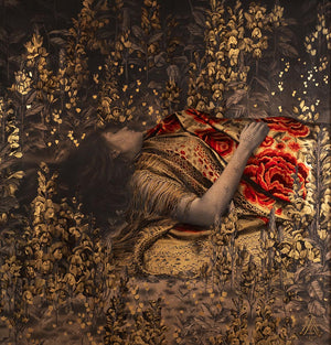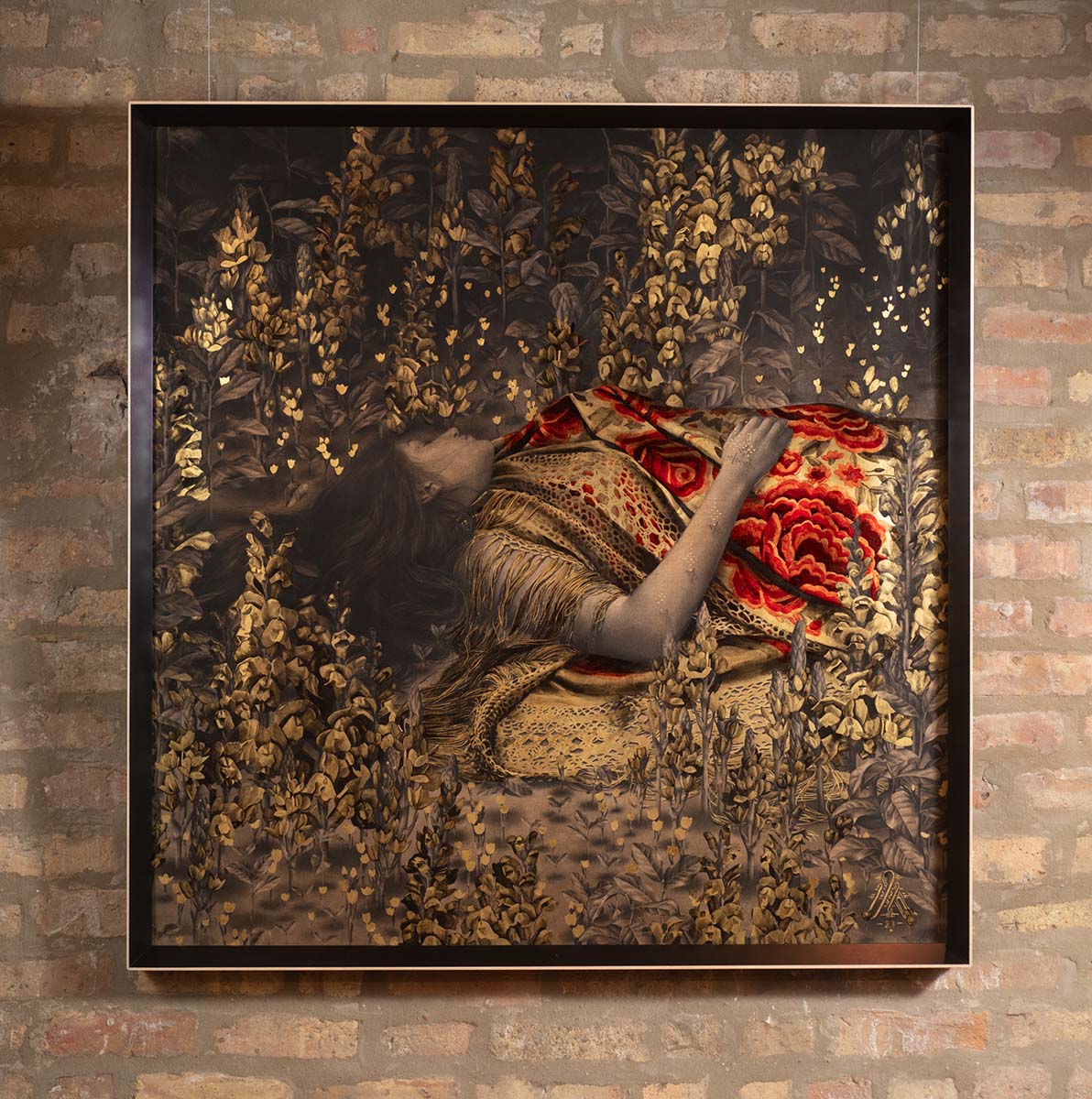 • Charcoal, carbon pencil, 23 karat gold leaf, ink