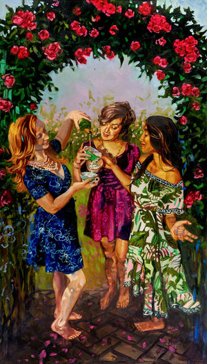 • Lacey Bryant is represented by Modern Eden Gallery in San Francisco, and has partnered with us on this project. Over the years, we have worked together on numerous shows and projects over her career. This particular series, which began in 2012, shortly after her first solo exhibition at the gallery, has grown in scope and ambition in the ensuing years. During the long time these paintings were being produced, the artist created works for 4 major solo exhibitions and more than 15 group exhibitions at Modern Eden, along with residencies in 2016 and 2017 at Chalk Hill. Throughout, she always found time to return to the tarot. There are reflections of her life and her community in every card, and while the process has been slow, it has been full of intention.