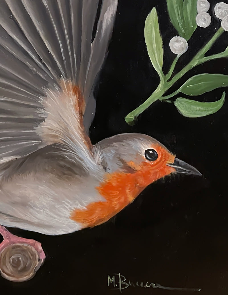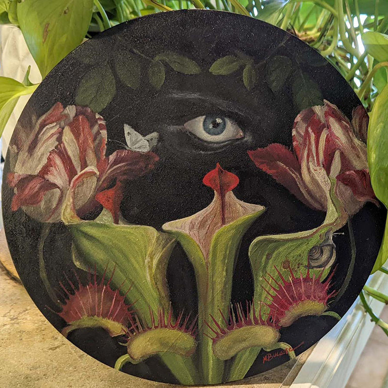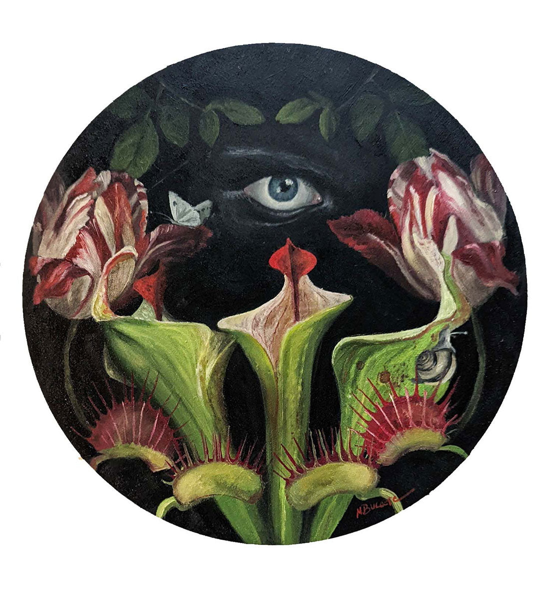 Megan Buccere (pronounced bus era) is a narrative painter who works primarily in soft pastels and oils. She attended Louisiana State University, holds a BS in Art Education, and has taught advanced and talented high school art for the past 15 years. Buccere's painting style features soft surreal works that blur the line between beauty and fear, creating stunning pieces with an edge. Her use of coincidental, accidental, and unexpected connections, such as her use of strings, multiple hands, and all knowing eyes, often leaves viewers orphaned with a mix of conflicting feelings and thoughts.