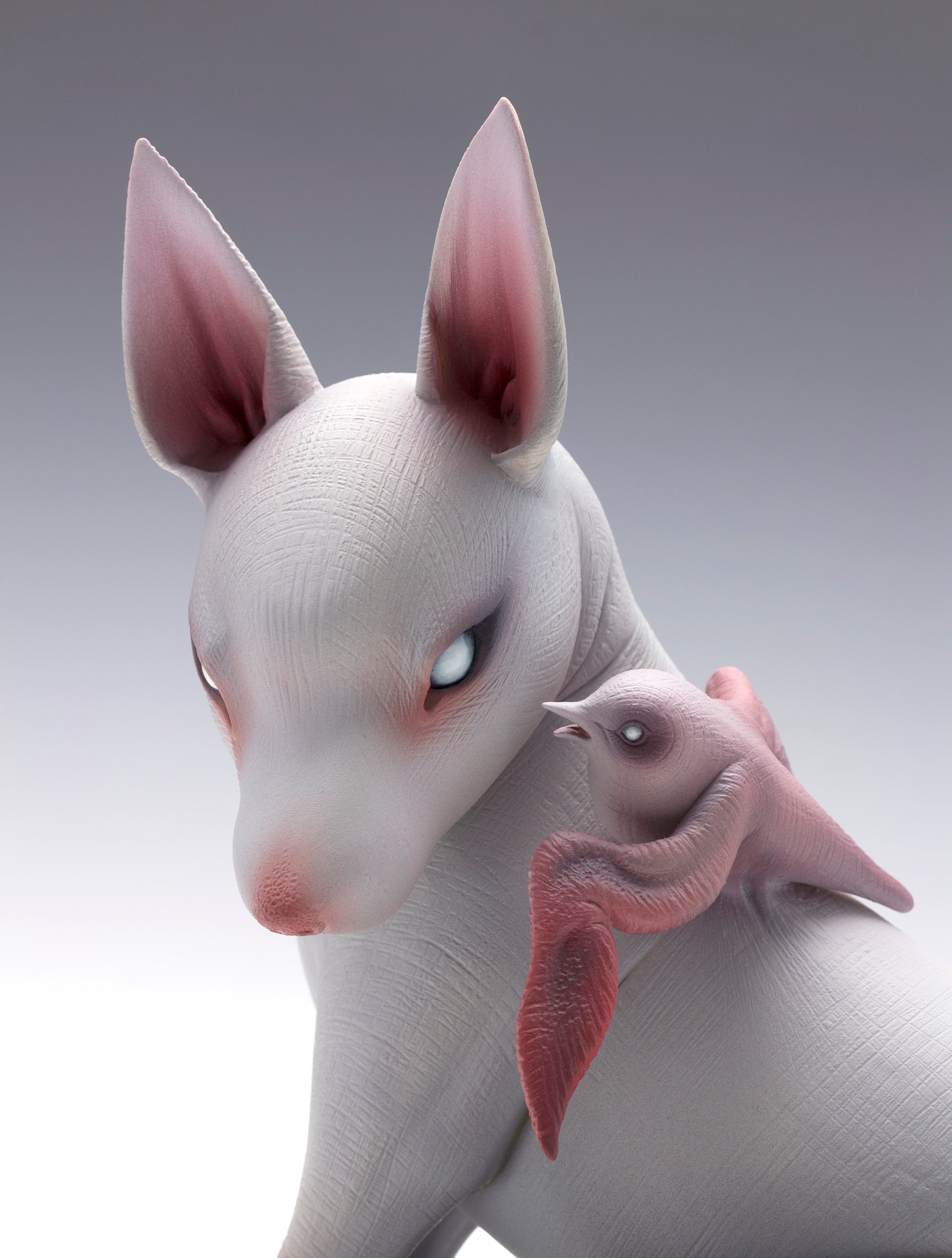 • Erika Sanada's early inspirations stemmed from creatures and characters of horror films. Watching these stories were a way for her to escape unpleasant realities during childhood. She creates intricate, hairless ceramic creatures—often adorable but also unsettling and bizarre. Her artwork has been published in Hi-Fructose Magazine, Hey! Magazine and Beautiful Bizarre Magazine. Sanada is represented by Modern Eden Gallery in San Francisco where the artist currently lives and works.