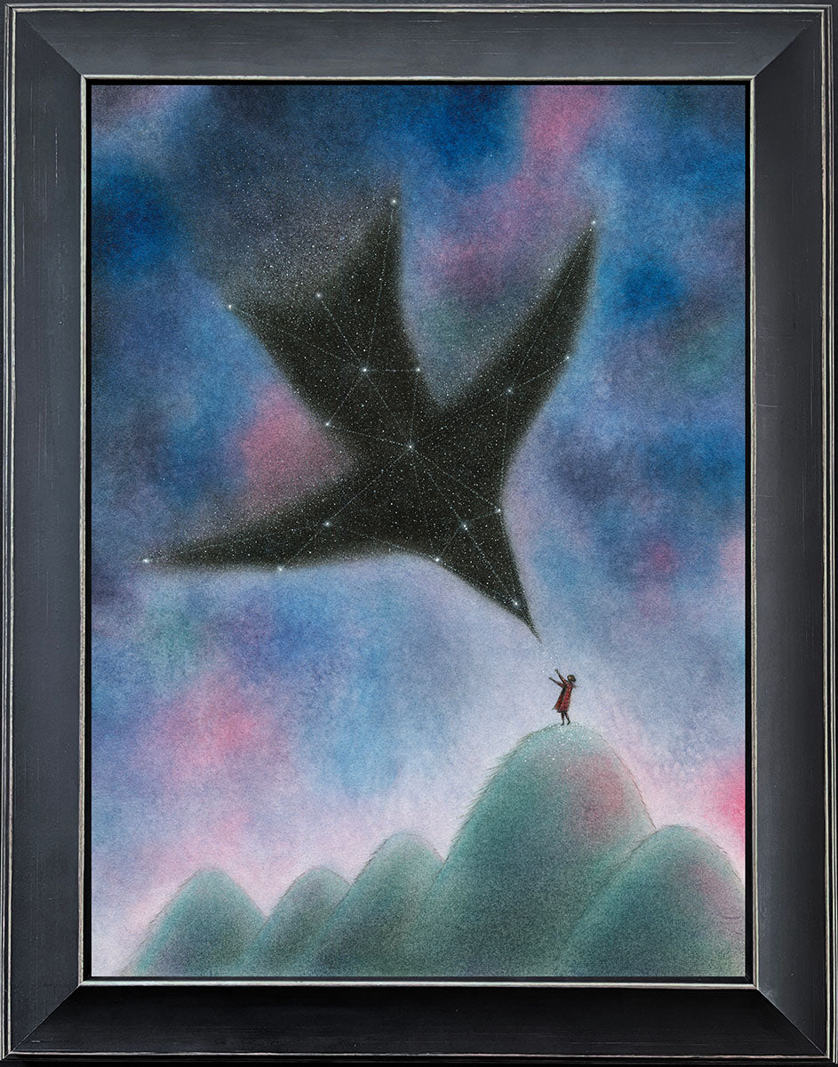 Jeannie Lynn Paske is a self-taught artist from Portland, Oregon who creates introspective work under the name Obsolete World. Using a mix of watercolor, charcoal, pastel, graphite, varnish and ink, she designs richly textured illustrations of peculiar creatures in thought-provoking settings. The mysteries of life, loss and loneliness are reoccurring themes, and her compositions often focus on the strange and unexplained. Many of her pieces reference philosophy with a nod to both the melancholy and humorous. Her soft sparse environments suggest a warm, dreamlike state, and the emotional imagery paired with her poetic titles help to convey a sense of gentle curiosity in her work.