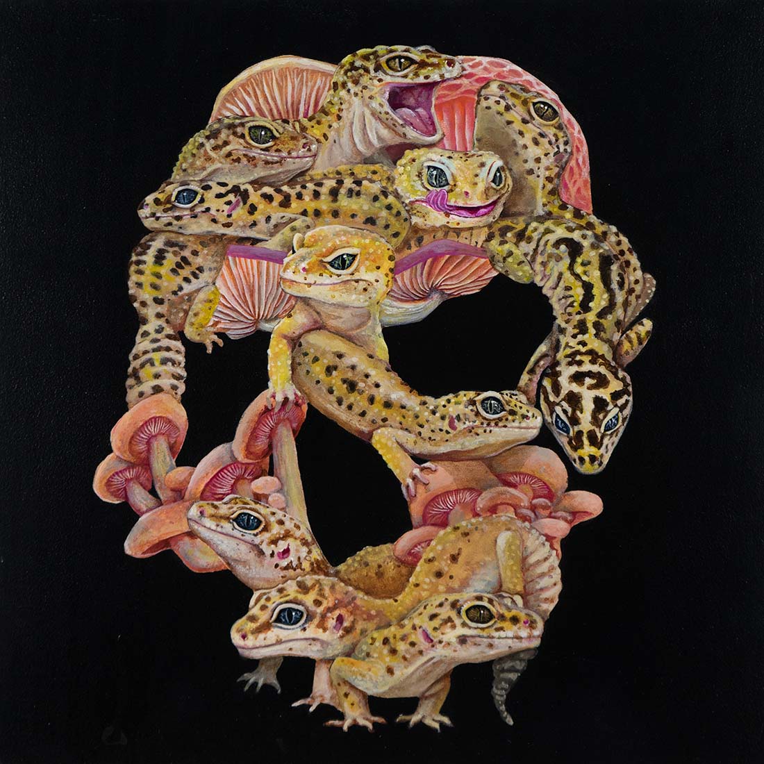 Ryan Harris is a traveling acrylic painter who's work centers around the interaction of humans and their environment told through the juxtaposition of wildlife, vibrant colors and whimsical objects. His belief in interconnectivity propels the characters in his work towards a common truth, a truth that encompasses all.